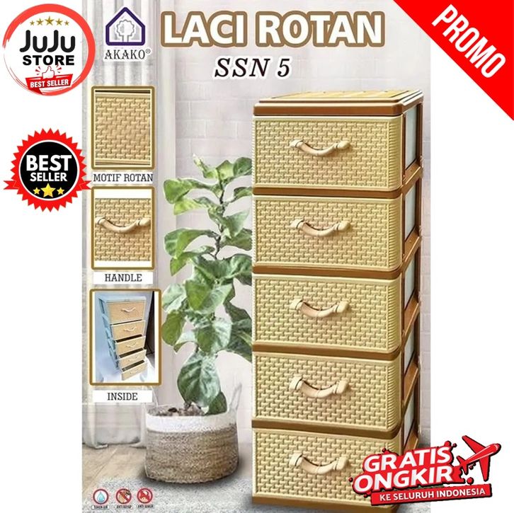 GRATIS ONGKIR AKAKO Lemari Laci Plastik Motif Rotan Susun 3 4 5 NEW PROMO TERLARIS BERGARANSI