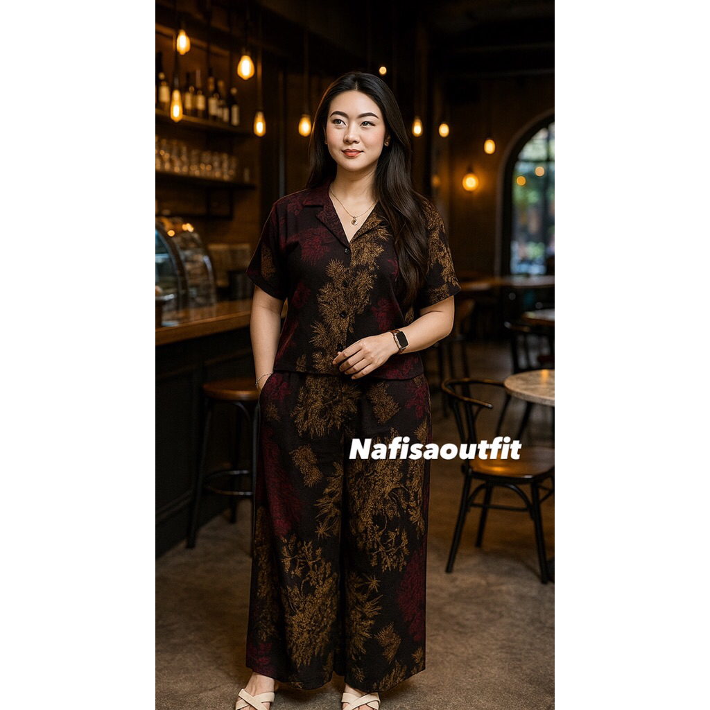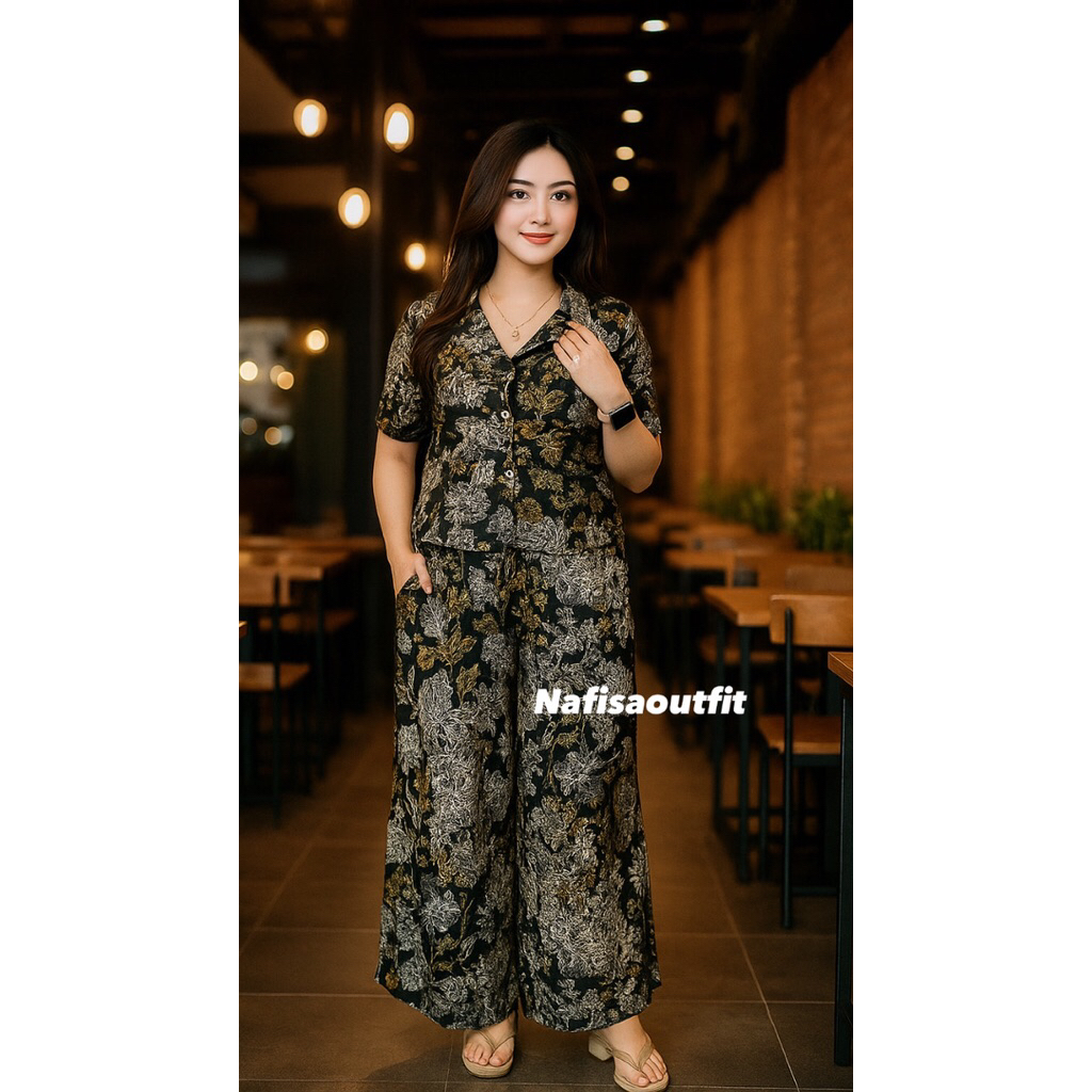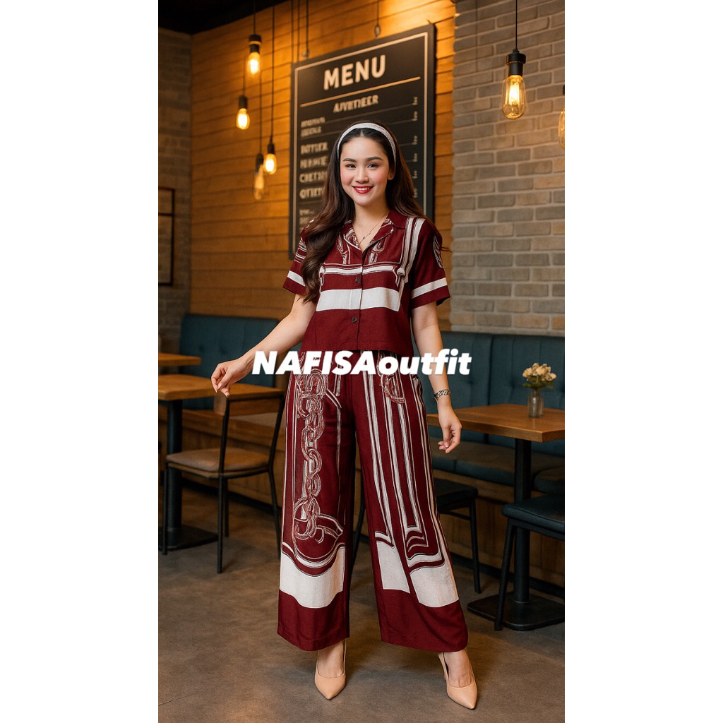 One Set Crop Setelan Celana Kulot Hightwaist By Nafisaoutfit