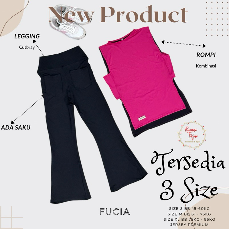 One Set Baju Olahraga 2 Warna Kombinasi Jersey Celana Cutbray Wanita Muslim Sporty