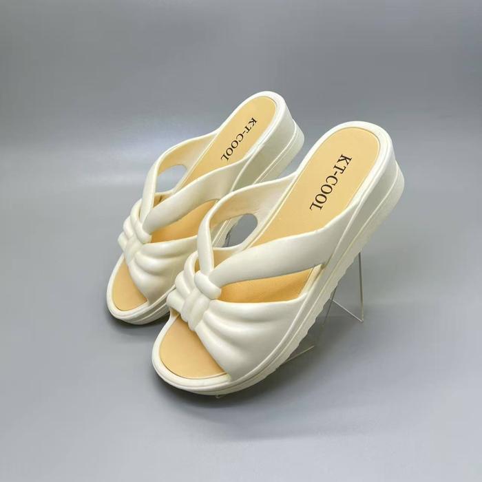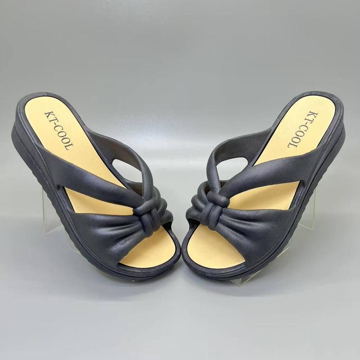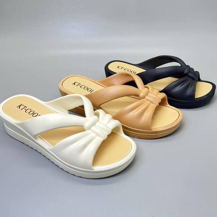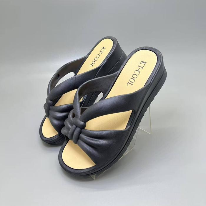 [Star]Size 37-40 8802 Sandal Wanita Slip On Wedges Korean Style Sandal Karet Lentur - HITAM, 37