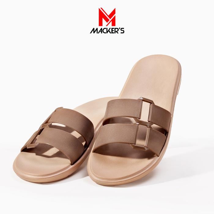 [Star][MACKER'S] 2303 Sandal Slop Wanita Polos Double Strap Sandal Wanita Ringan Empuk Bahan Karet coklat Shoes Sendal S