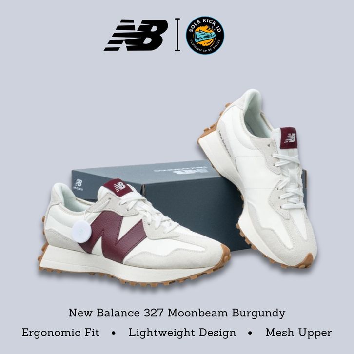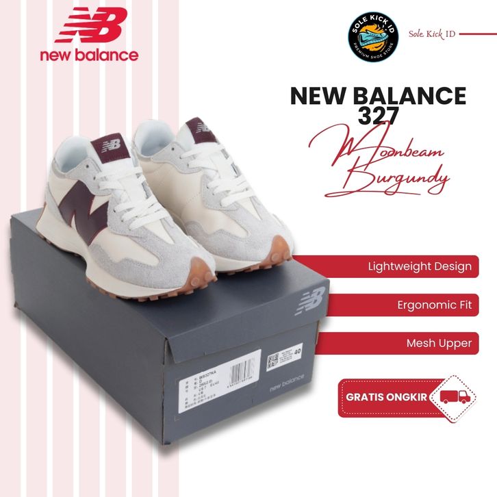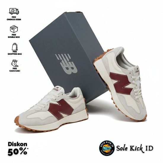 Sepatu Sneakers Pria & Wanita New Balance 327 KA Moonbeam White Grey Burgundy Premium Import High Quality