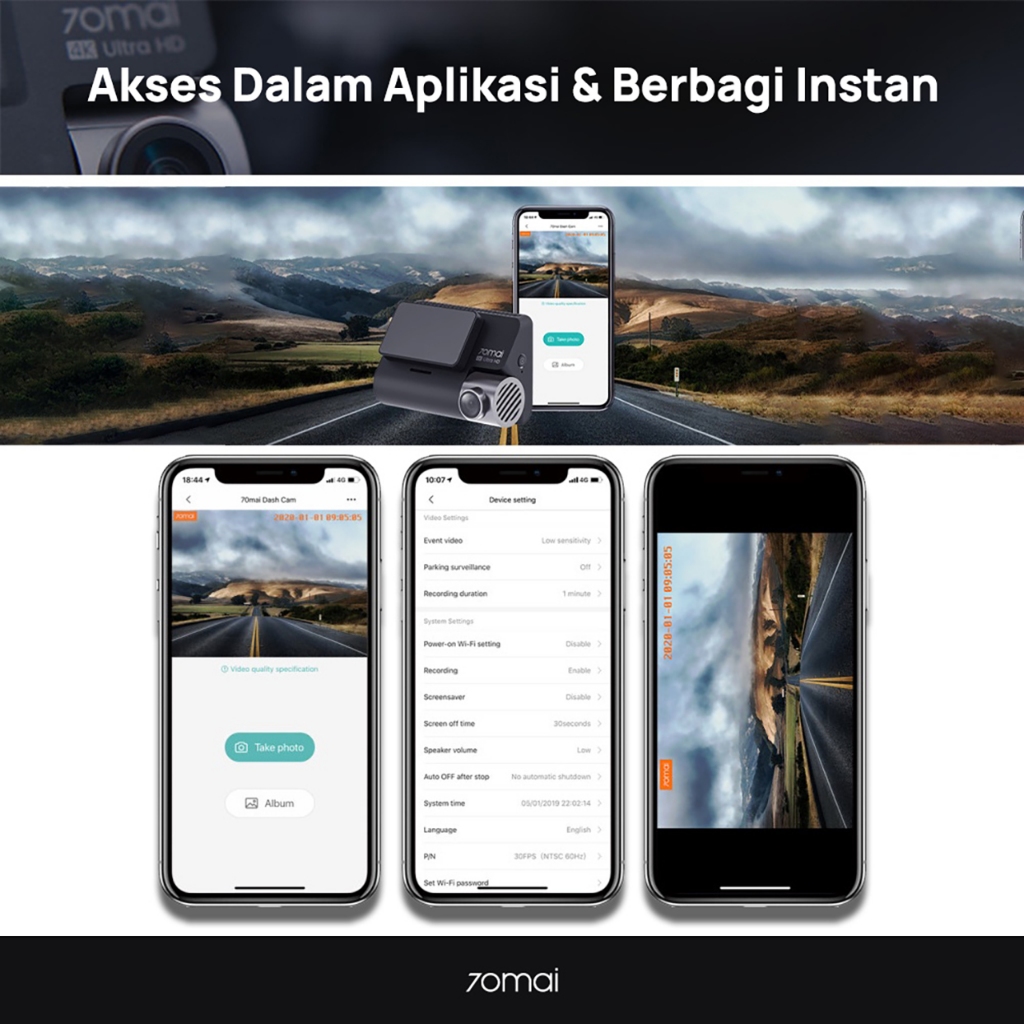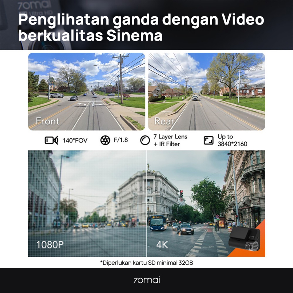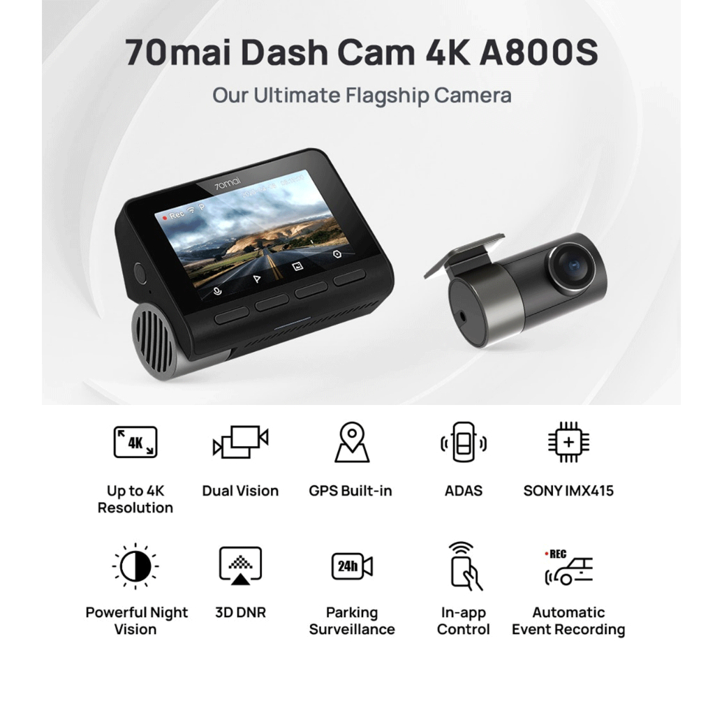70mai Dash Cam A800S Set Front 2160P Rear 1080P FOV 140 GPS Night Vision ADAS Dashcam Mobil