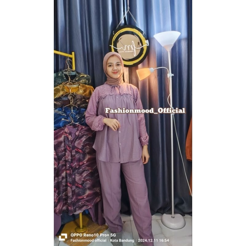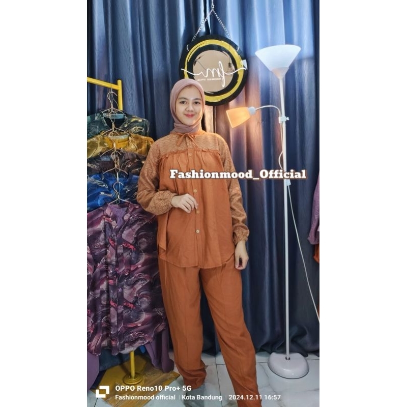 ONE SET POLO LINEN PREMIUM // SETELAN POLO LINEN BRUKAT // SETELAN LINEN KOMBINASI BRUKAT //BUSUI FRIENDLY//PIYAMA//PREMIUM//HOMEY//BUSUI // BRUKAT // DAILY // KASUAL // KEKINIAN