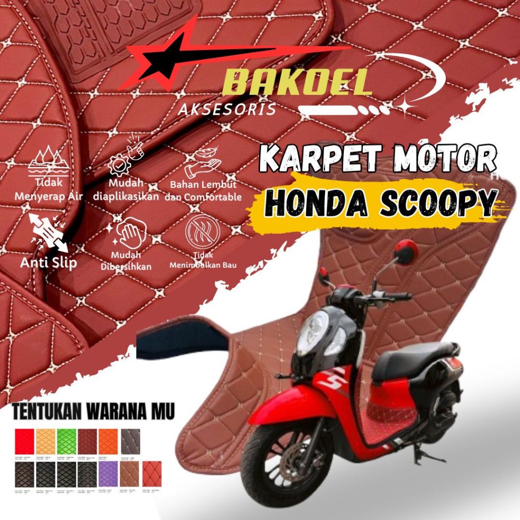 Karpet Motor Honda Scoopy Terbaru 2012 -2025 Alas Kaki Premium Bahan Kulit Anti Slip Mudah Dibersihkan