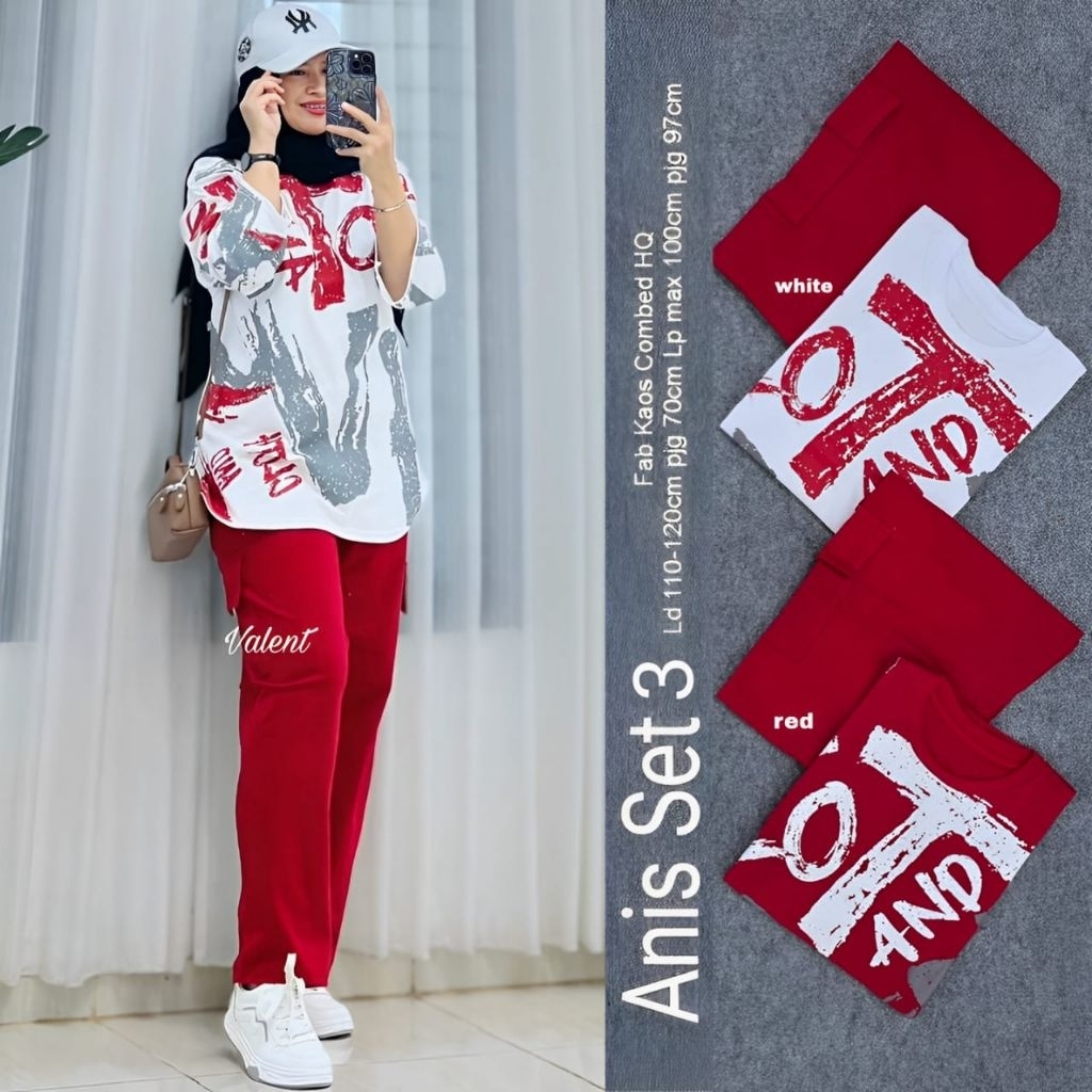 Anis Set by Valent Oneset merah putih jumbo Ld 110-120cm Setelan merah putih Terlaris
