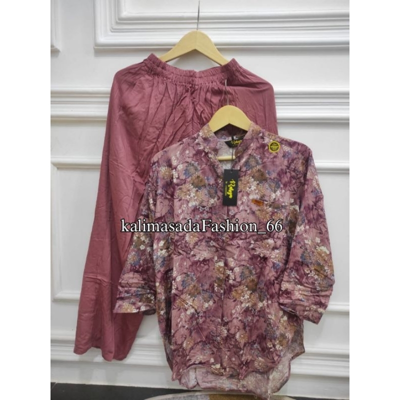 Setelan Wanita Kemeja Kekinian Bahan Rayon Twill Premium Setelan Celana Rasya Jumbo Terbaru 2025