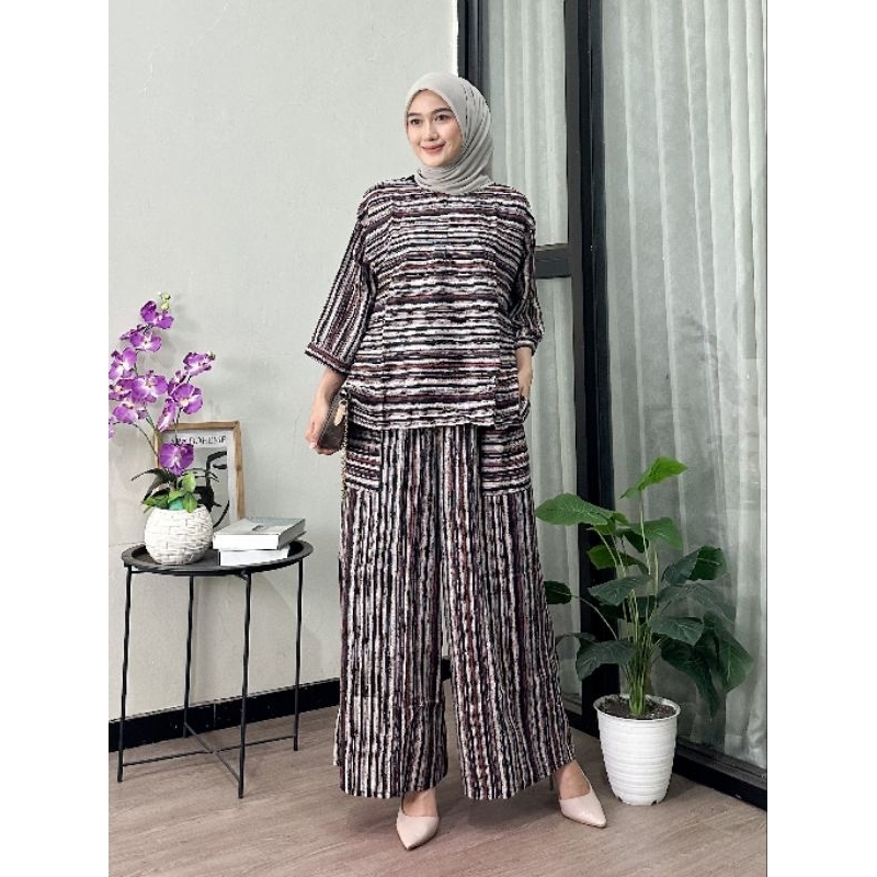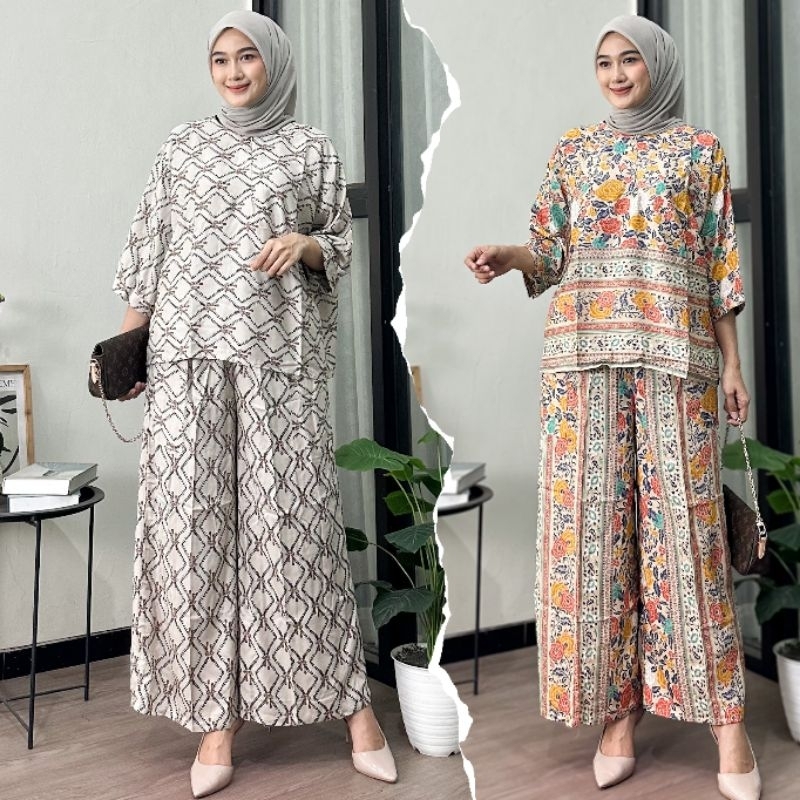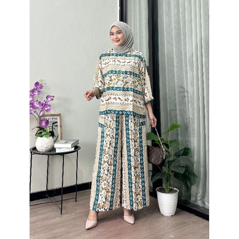 Zahra Setelan Saku Jumbo baju atasan dan celana kulot jumbo One Wan On Set Daily Ootd Pajamas