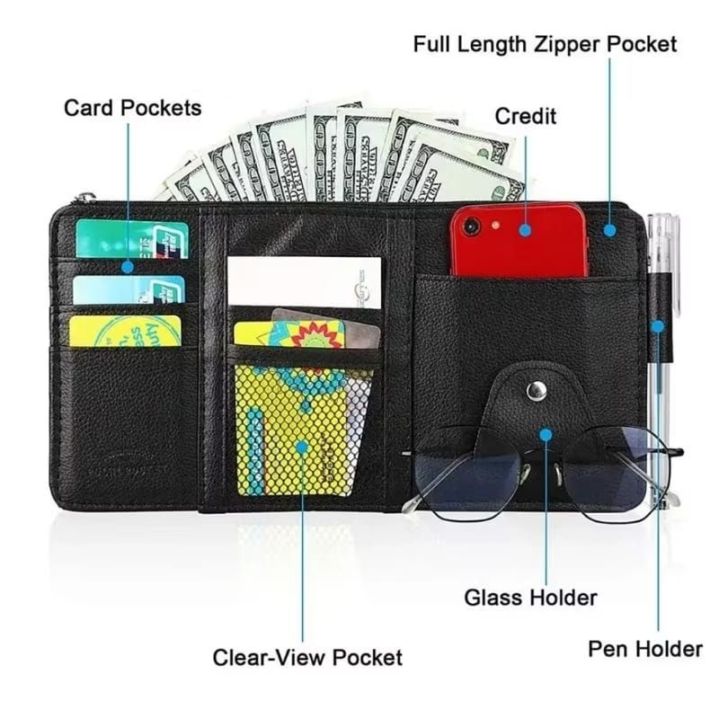 VS-02 Sun Visor Car Organizer Tempat Kartu Pen Handphone Mobil Sunvisor E Tol Kacamata koin
