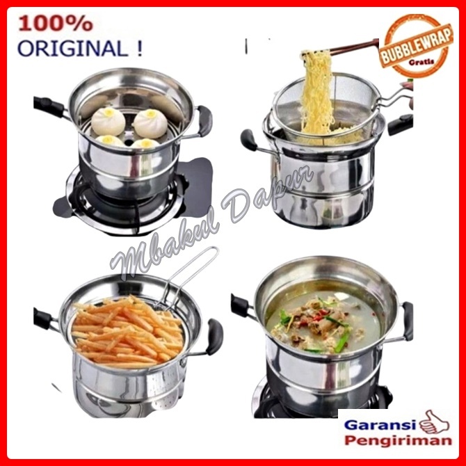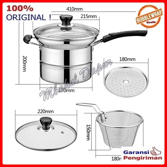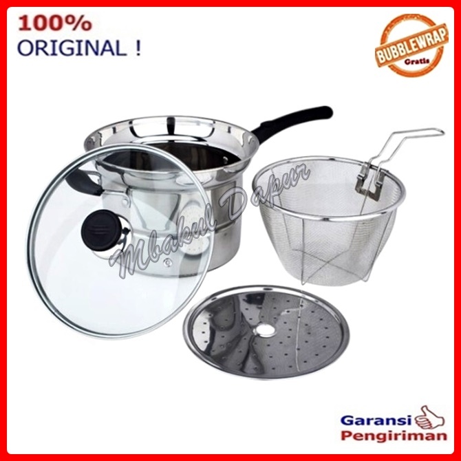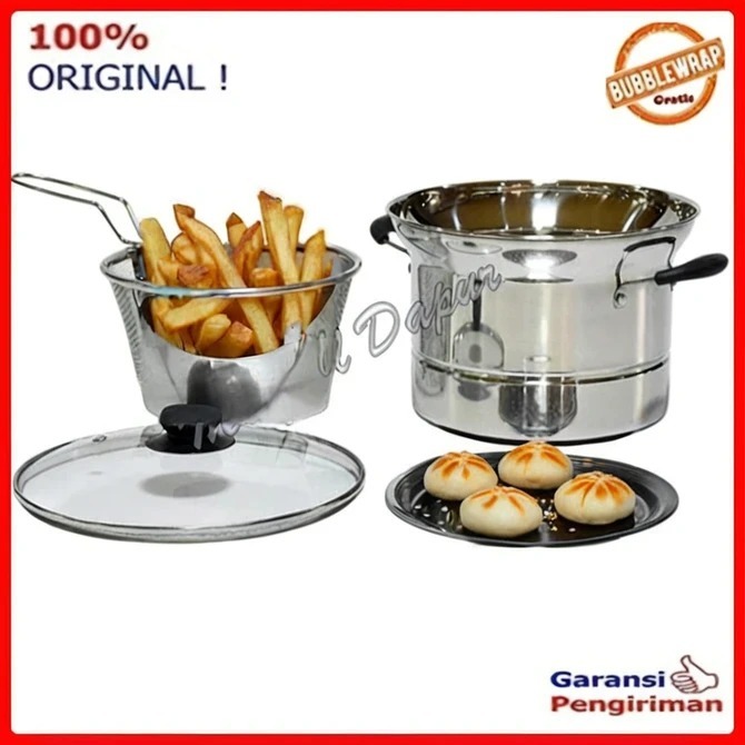Panci Goreng Kentang Deep Fryer Gagang Panjang dan Gagang Dua Stainless Plus Fry net 22 cm