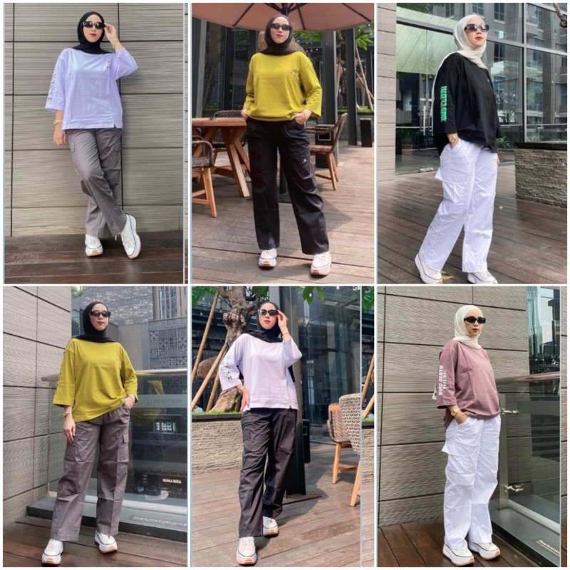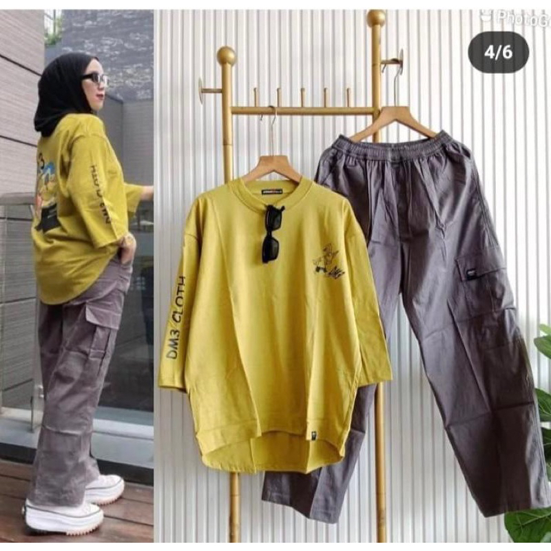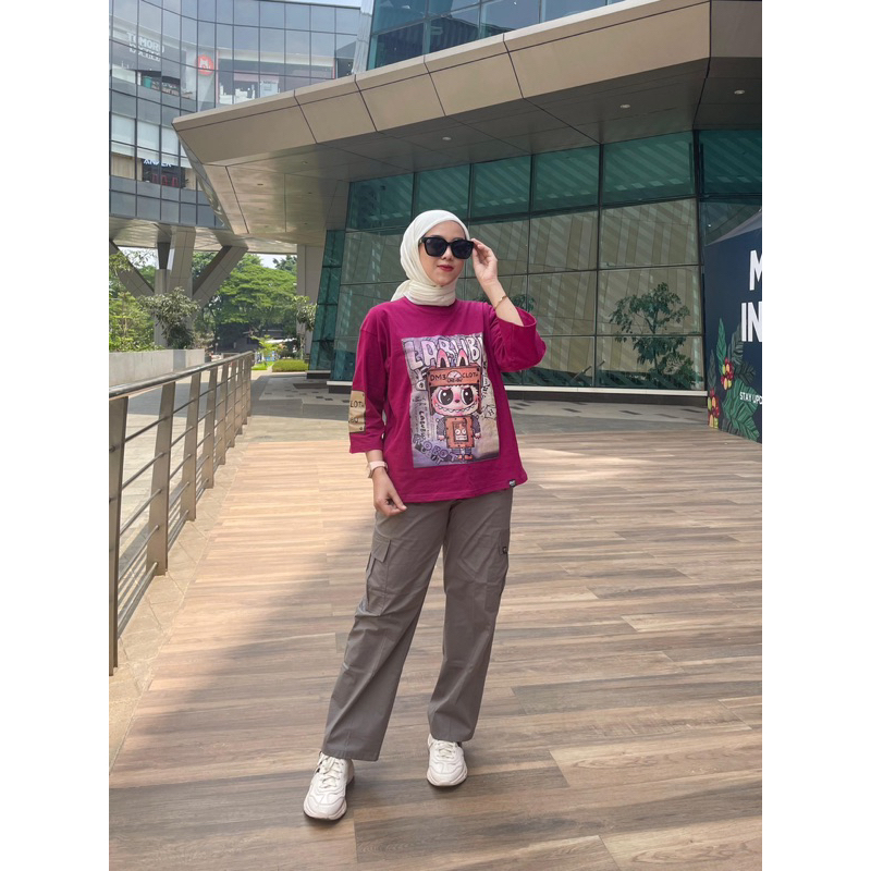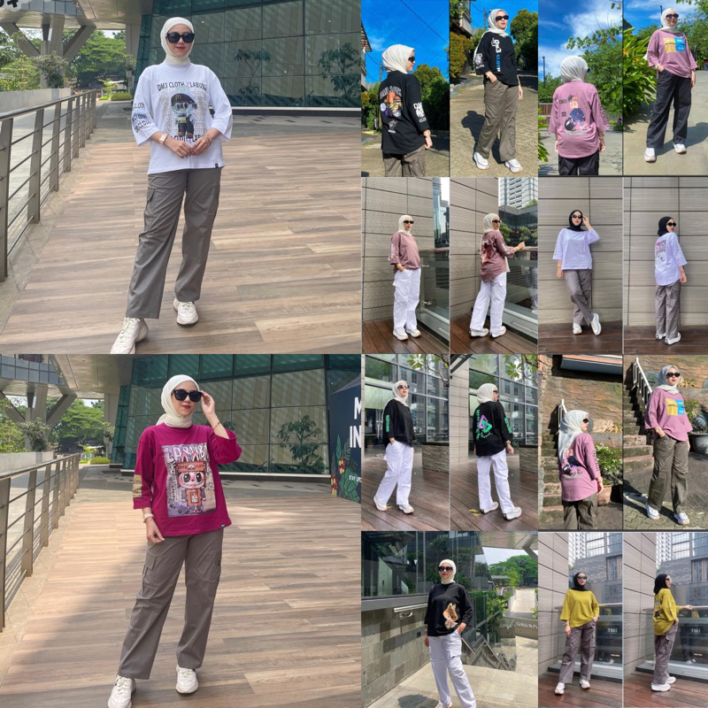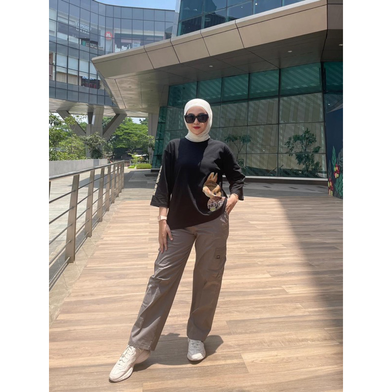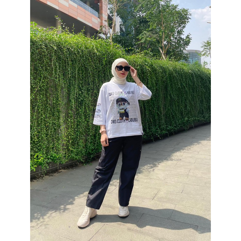 SETELAN CELANA CARGO LABUBU KAOS LENGAN 7/8 . STELAN CARGO TERBARU. DM3