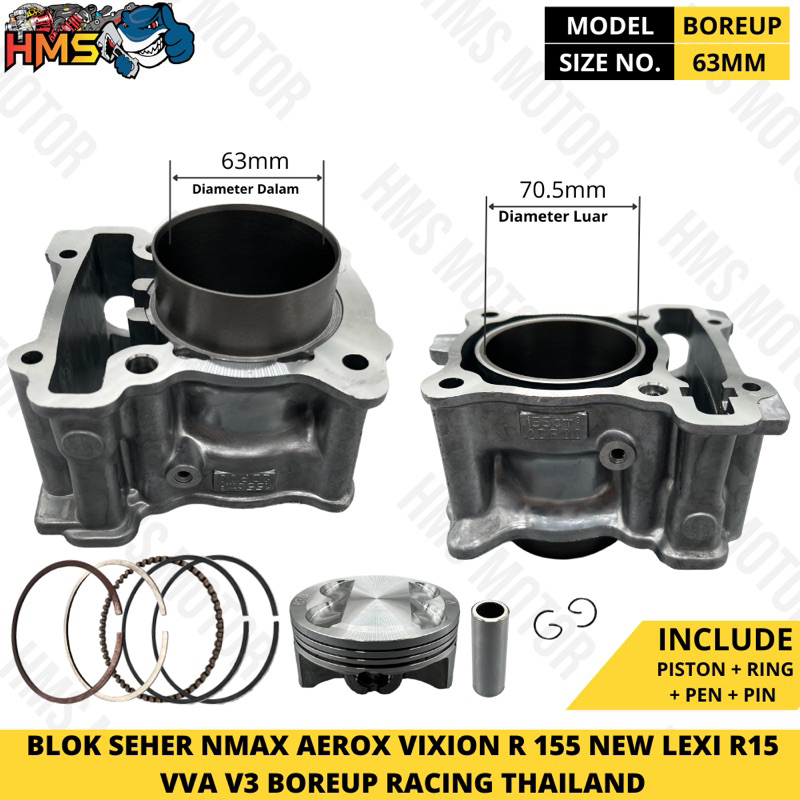 BLOK SEHER NMAX AEROX VIXION R 155 NEW LEXI R15 VVA V3 RACING BOREUP BORE UP 62MM 63MM 62 63 MM RVN THAILAND