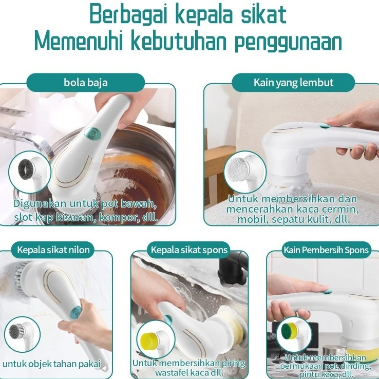 TOREDO Sikat Elektrik 5 in 1 Handheld Sikat Kamar Mandi Rotasi 360° Derajat Kebisingan Rendah Tahan Air