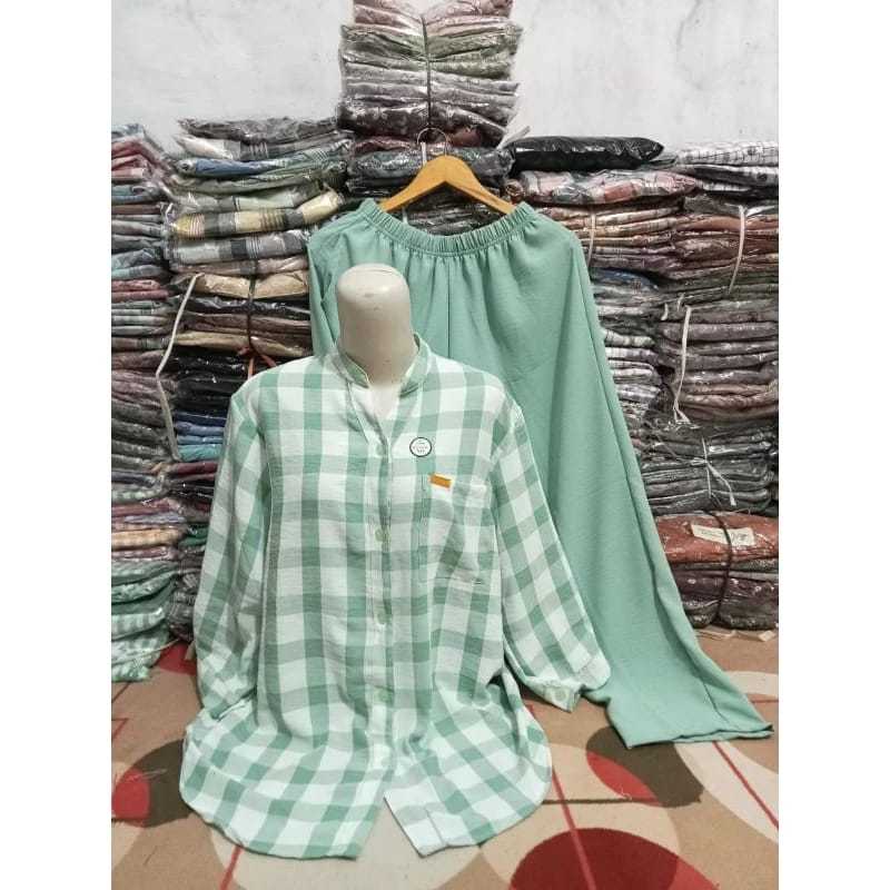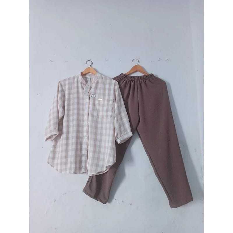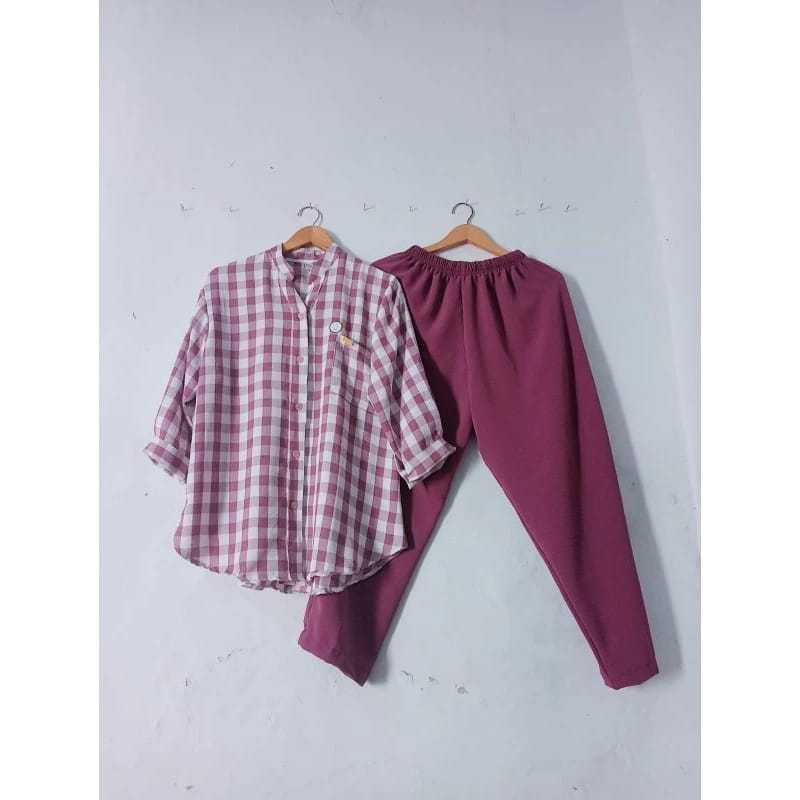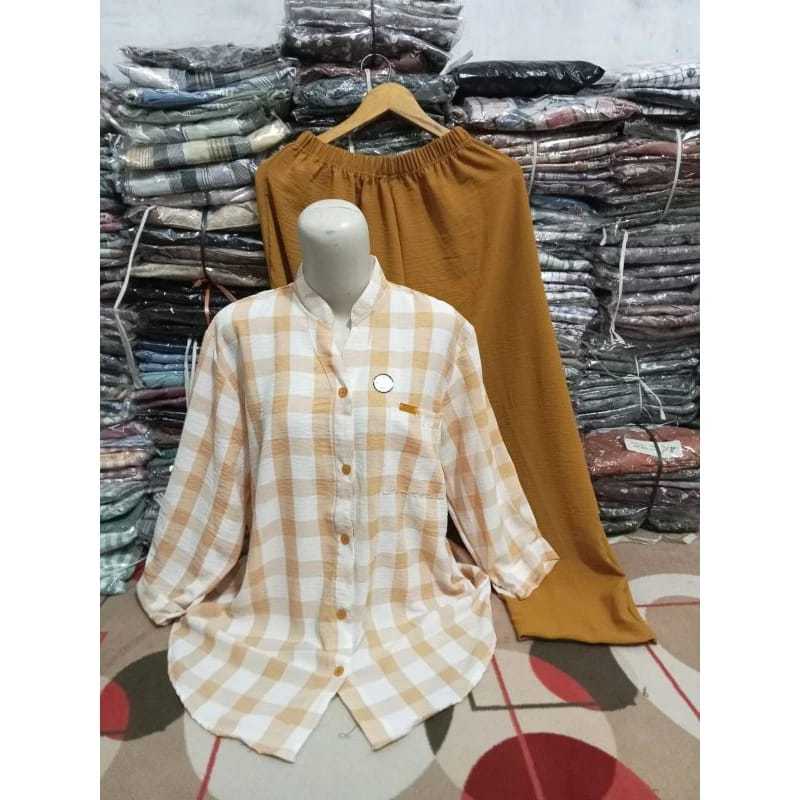 Setelan WANITA CRINGKLE kotak kotak oneset terlaris one set Ld 110 - 120 simpel elegan