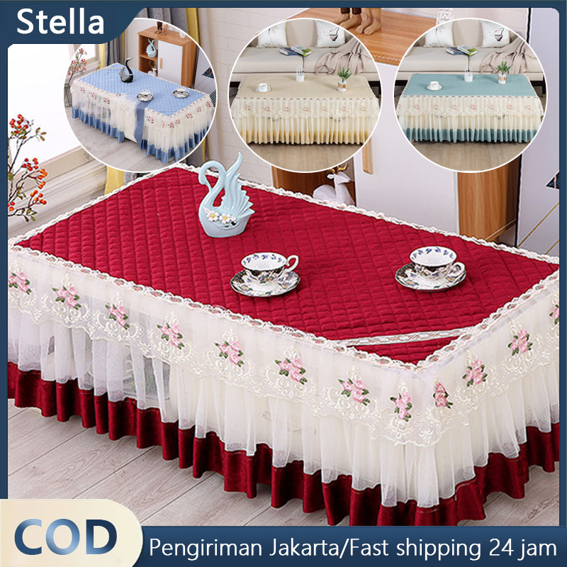 Rectangle Lace Table Cloth Sarung Meja Ruang Tamu Taplak Meja Persegi Perabotan Tatakan Taplak Meja 55x110x40cm