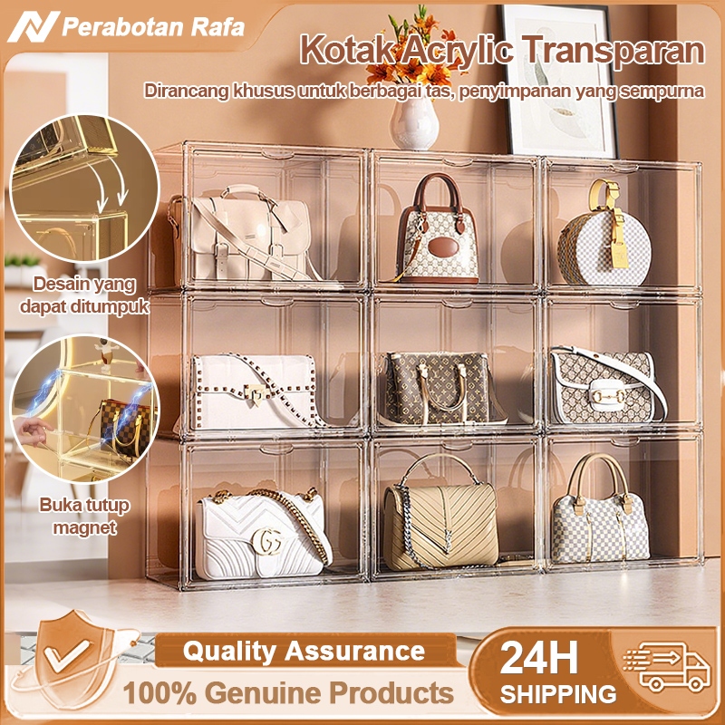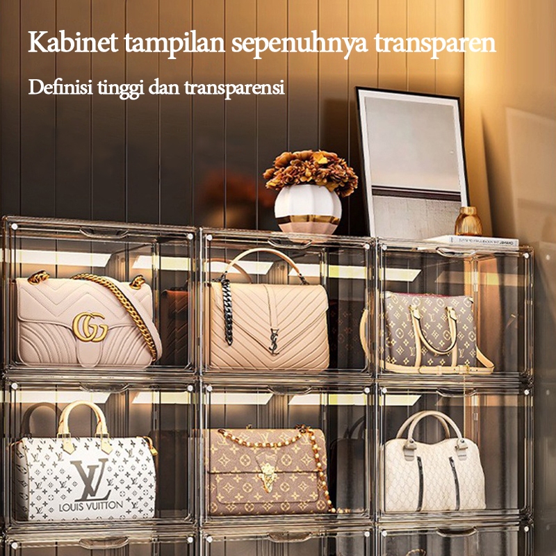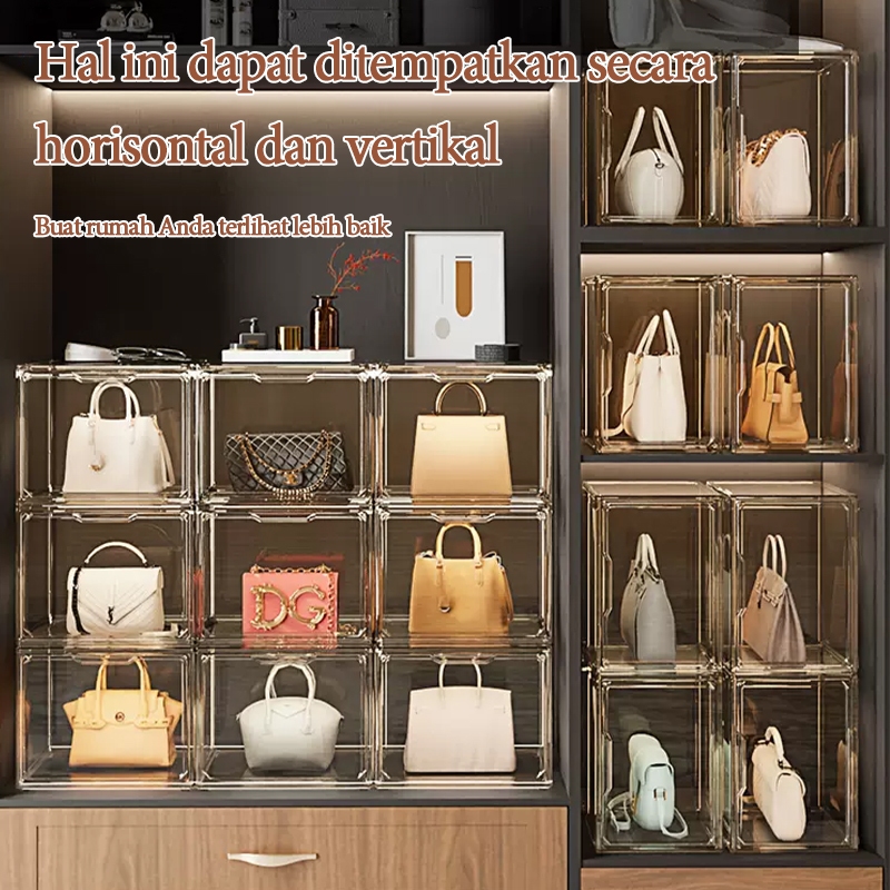 【Perabotan Rafa】Kotak akrilik Kotak penyimpanan akrilikKotak penyimpanan tas Lemari penyimpanan tahan debu kotak pajangan kotak pajangan transparan yang indah Penutup Pelindung
