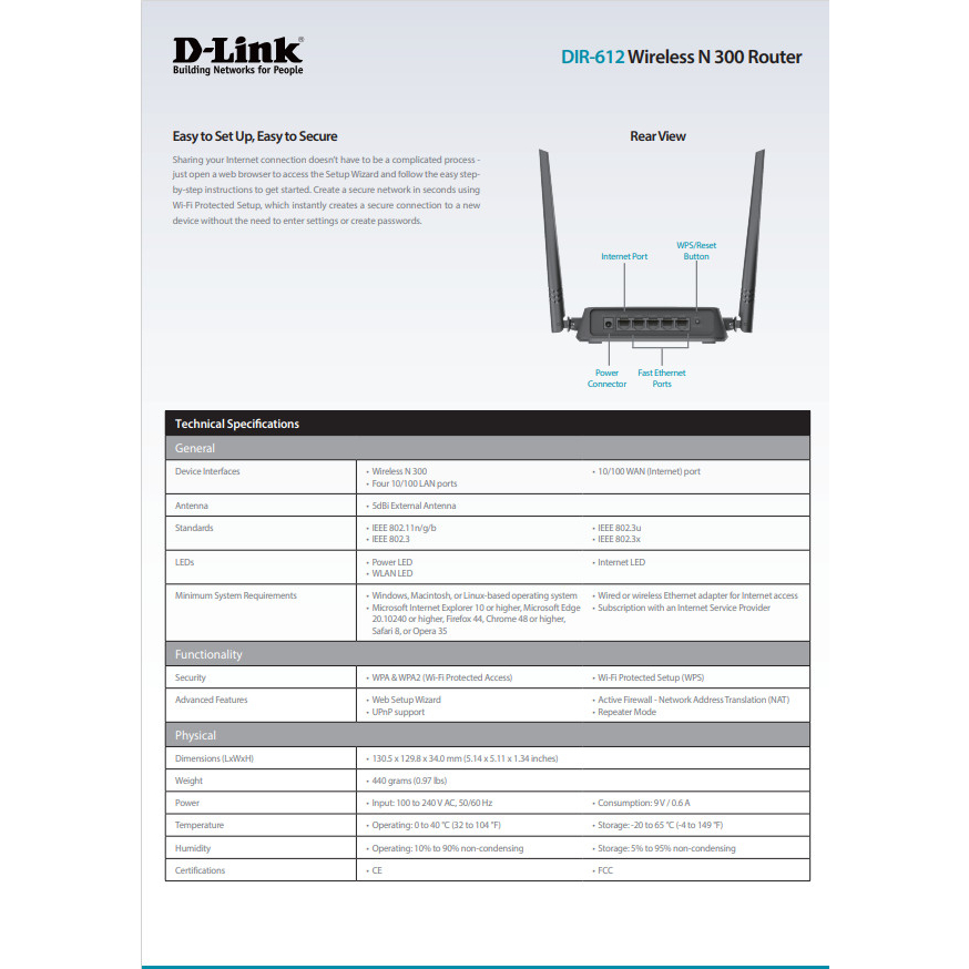 Wireless Router D-Link DIR-612 N300 Fast Ethernet