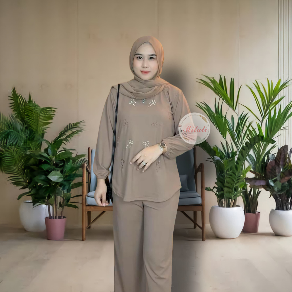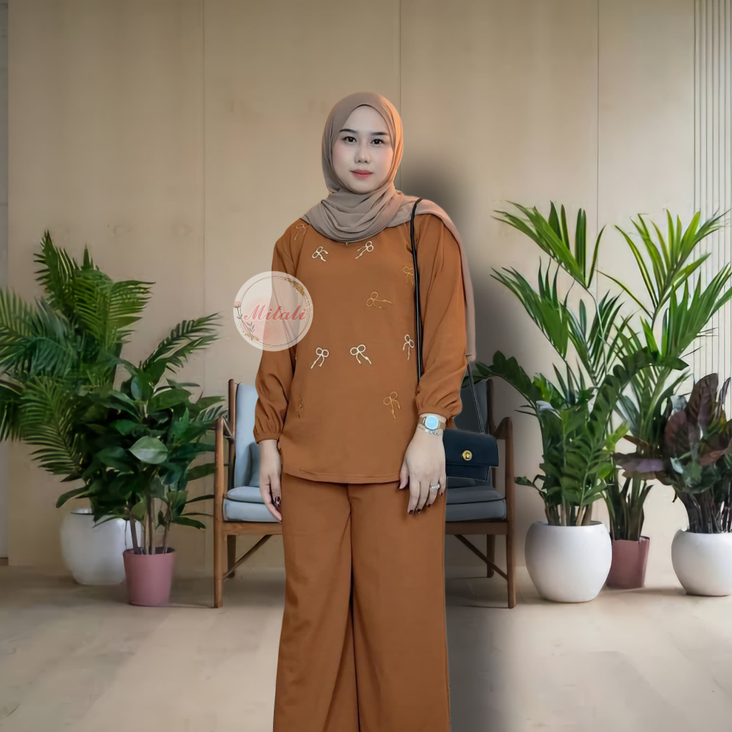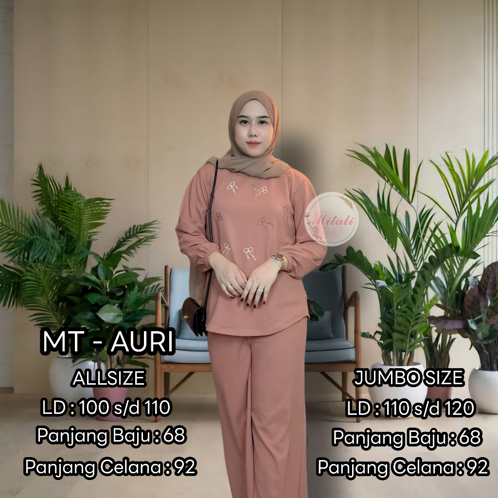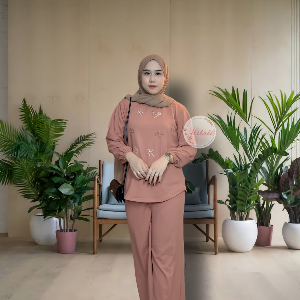 MT - Oneset Auri Bahan Knit Osaka Variasi BORDIR Pita [PO KILAT ANTRI PACKING]