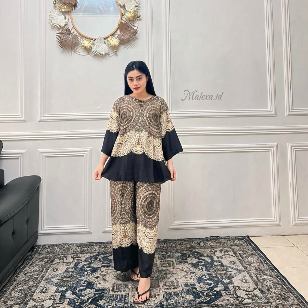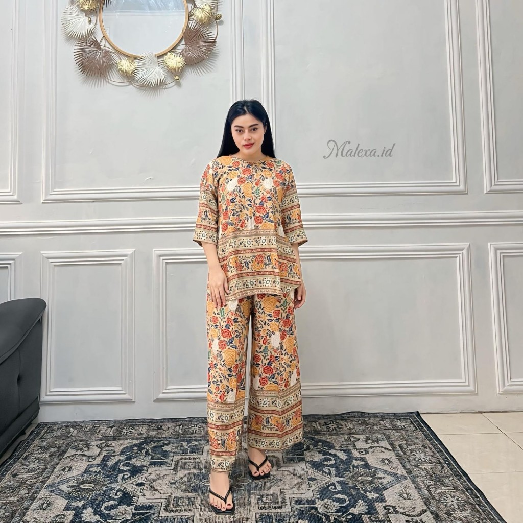 Malexa.id - Lala One Set Vest Kemeja dan Kulot Lengan 7/8 Rayon Motif Adem dan Nyaman One Set Daily