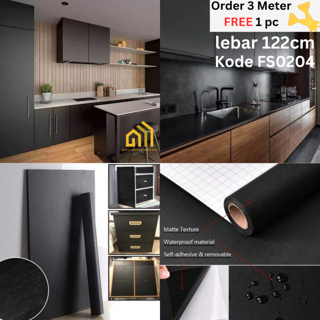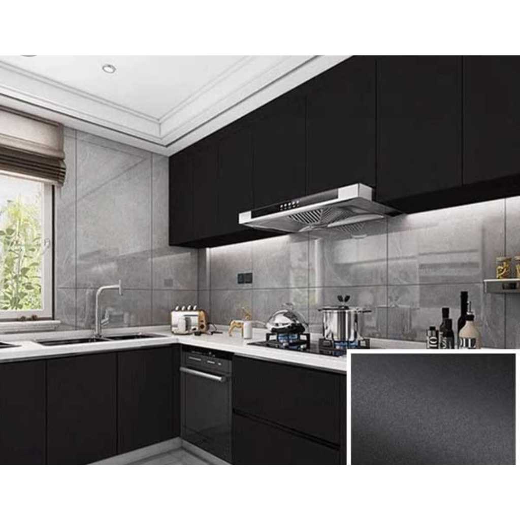 Stiker wallpaper pelapis lemari meja dapur kitchen set sticker hitam doff pvc sheet