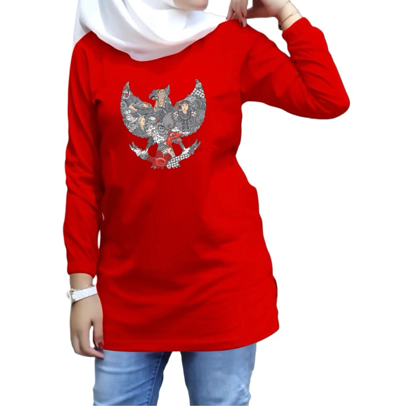 KAOS OVERSIZE ATASAN WANITA KEKINIAN LENGAN PANJANG MERAH CABE MOTIF 17 AGUSTUSAN