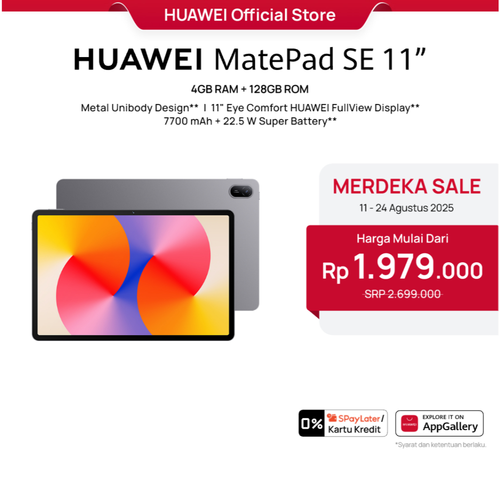 [Star] [BEST SELLING] HUAWEI MatePad SE 11" Tablet [4+128GB] | FHD+ Eye Comfort Display | 7700mAh | Metal Unibody