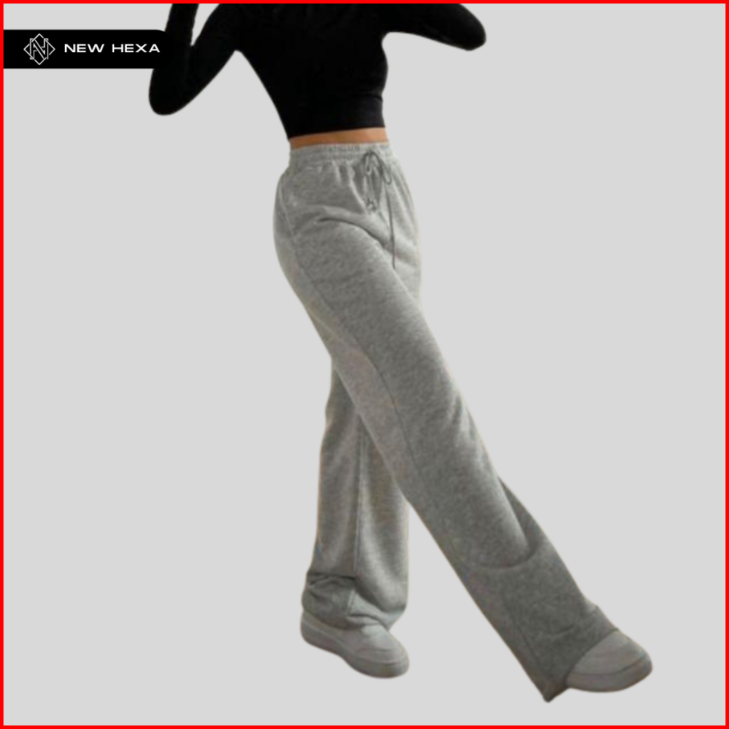 Celana Panjang Baggy Loosepants Wanita Joger New Hexa Bahan Katun Fleece Misty