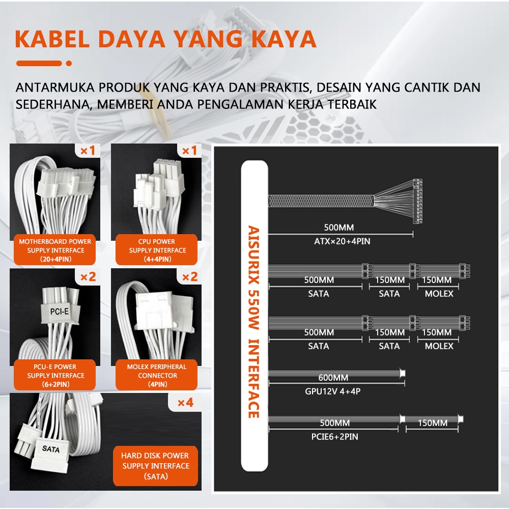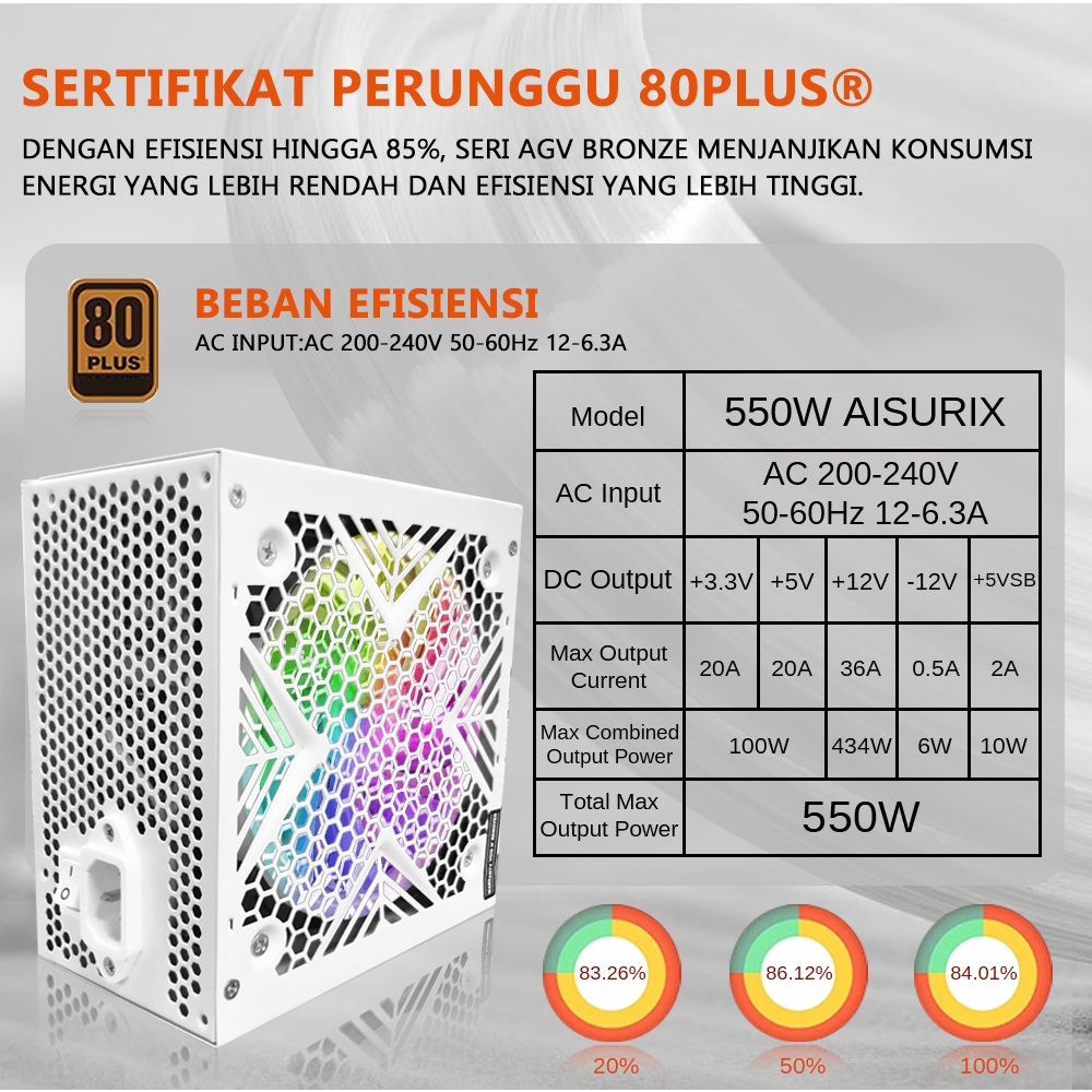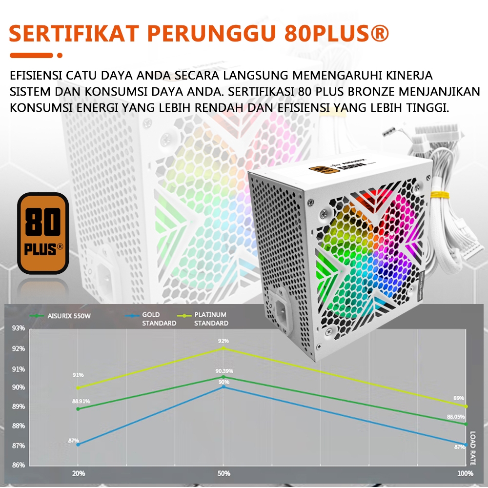 [Star] AISURIX PSU 550W/650W 80PLUS Bronze Power Supply 650W Gaming 550 Watt 80+ Bronze White