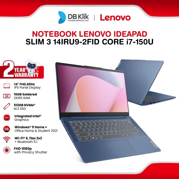 [BARU] LAPTOP LENOVO Slim 3 Core i7-150U / RAM 16GB / SSD 512GB / LAYAR 14" FULL HD / FREE ONGKIR / FREE BAGPACK