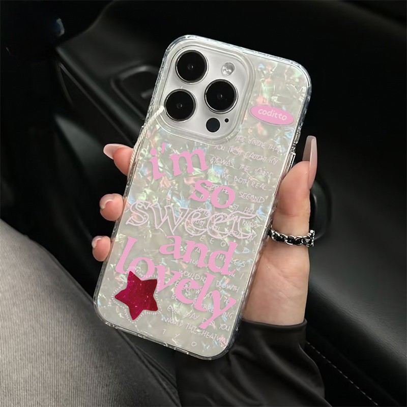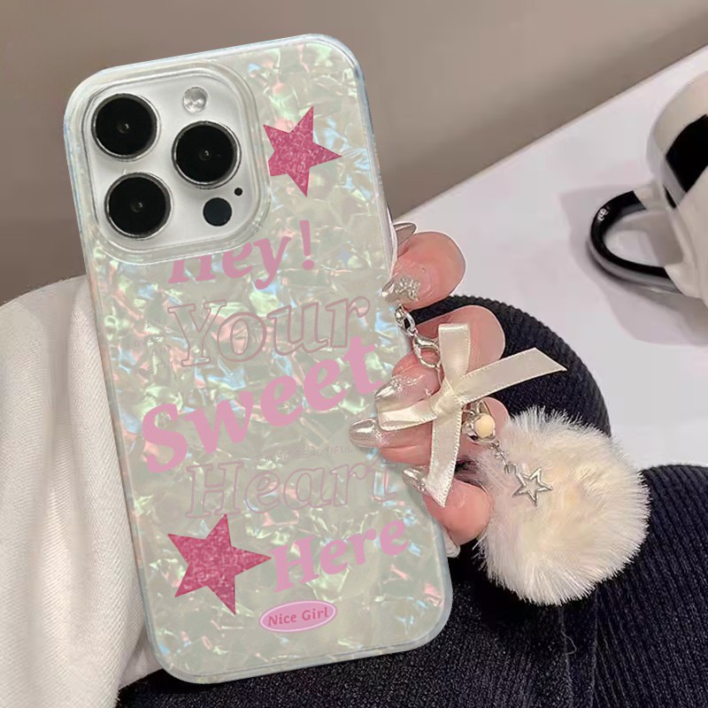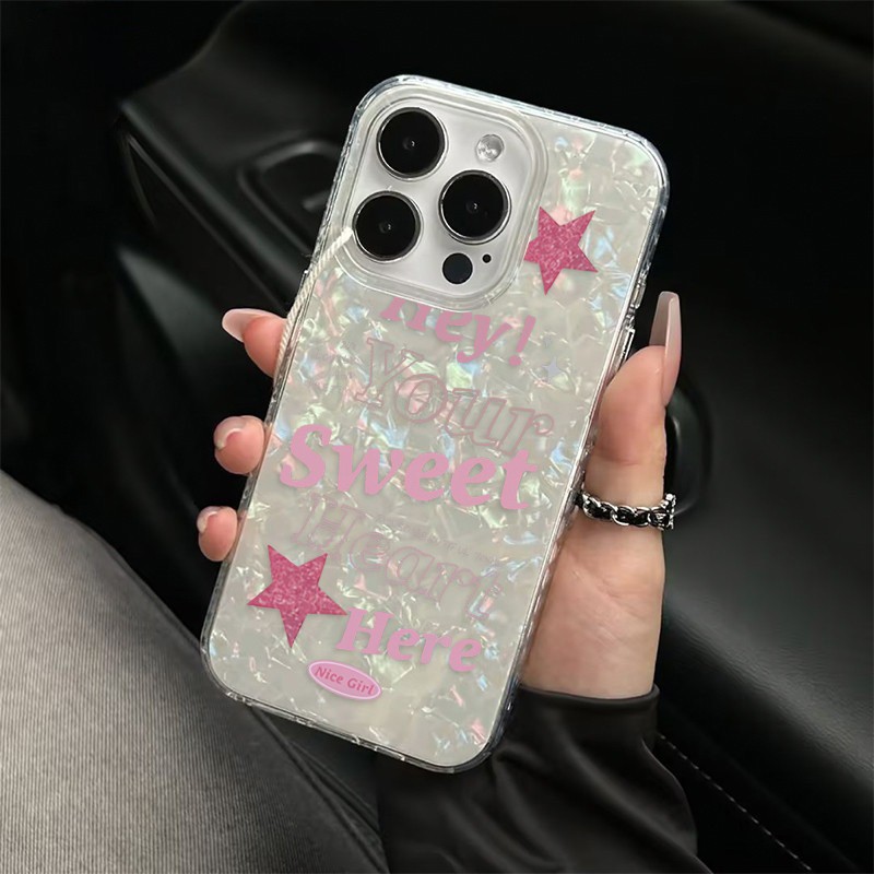 Climbup.case Cartoon Sweet Cute Red Star Fashion English Letter Soft Case Compatible with iPhone 15 14 13 12 11 16
