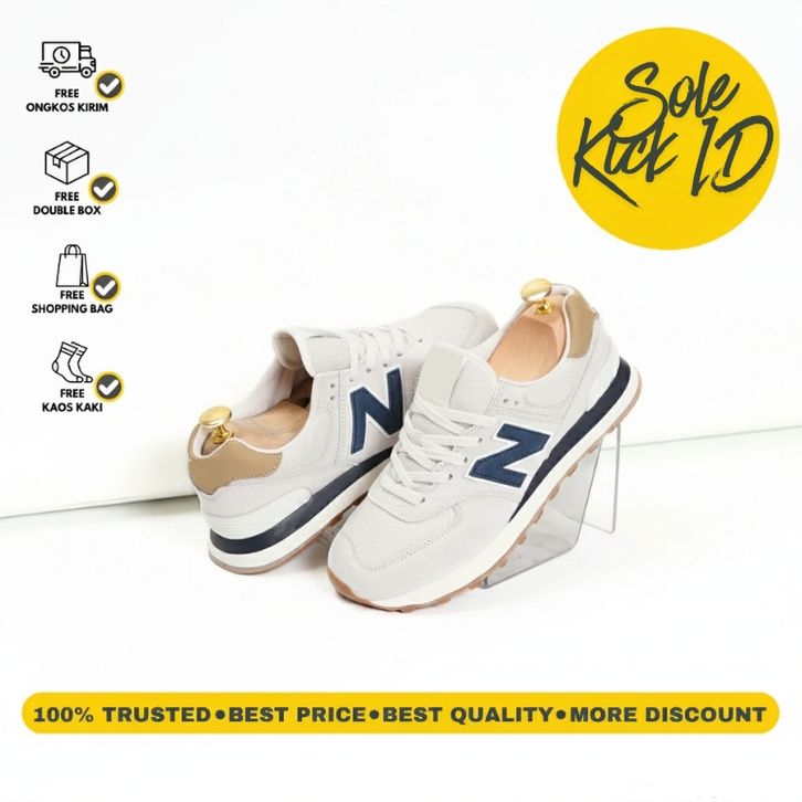 Sepatu Sneakers Pria & Wanita New Balance 574 Beige Navy Original NB WL574LCC Premium Import High Quality
