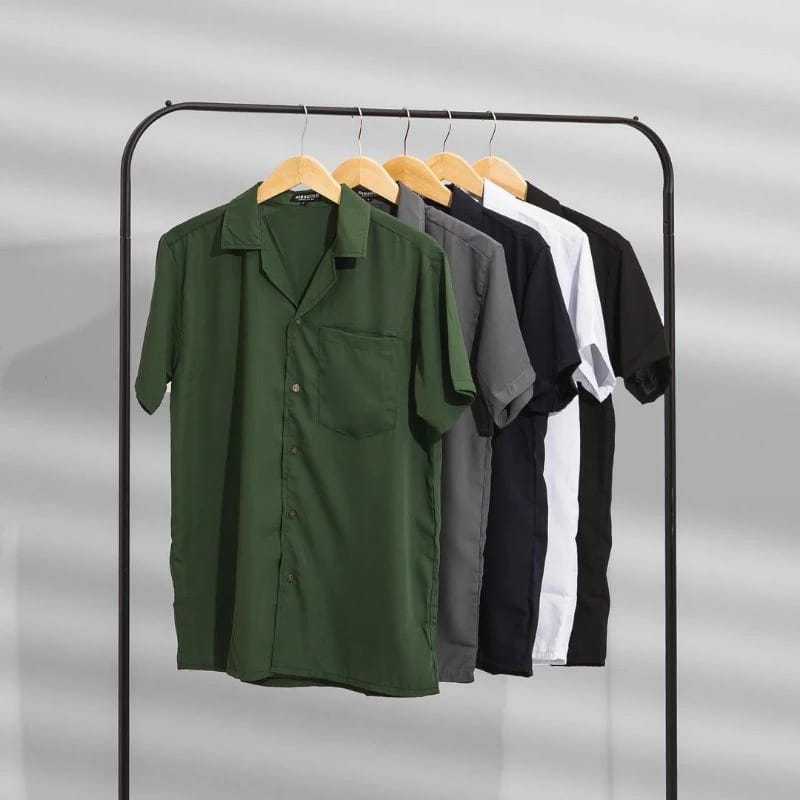 Kemeja Polos Pria Lengan Pendek/Kemeja Pria Lengan Pendek Polos Kerah V M-XXL