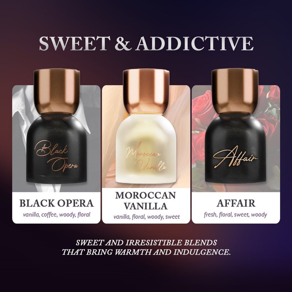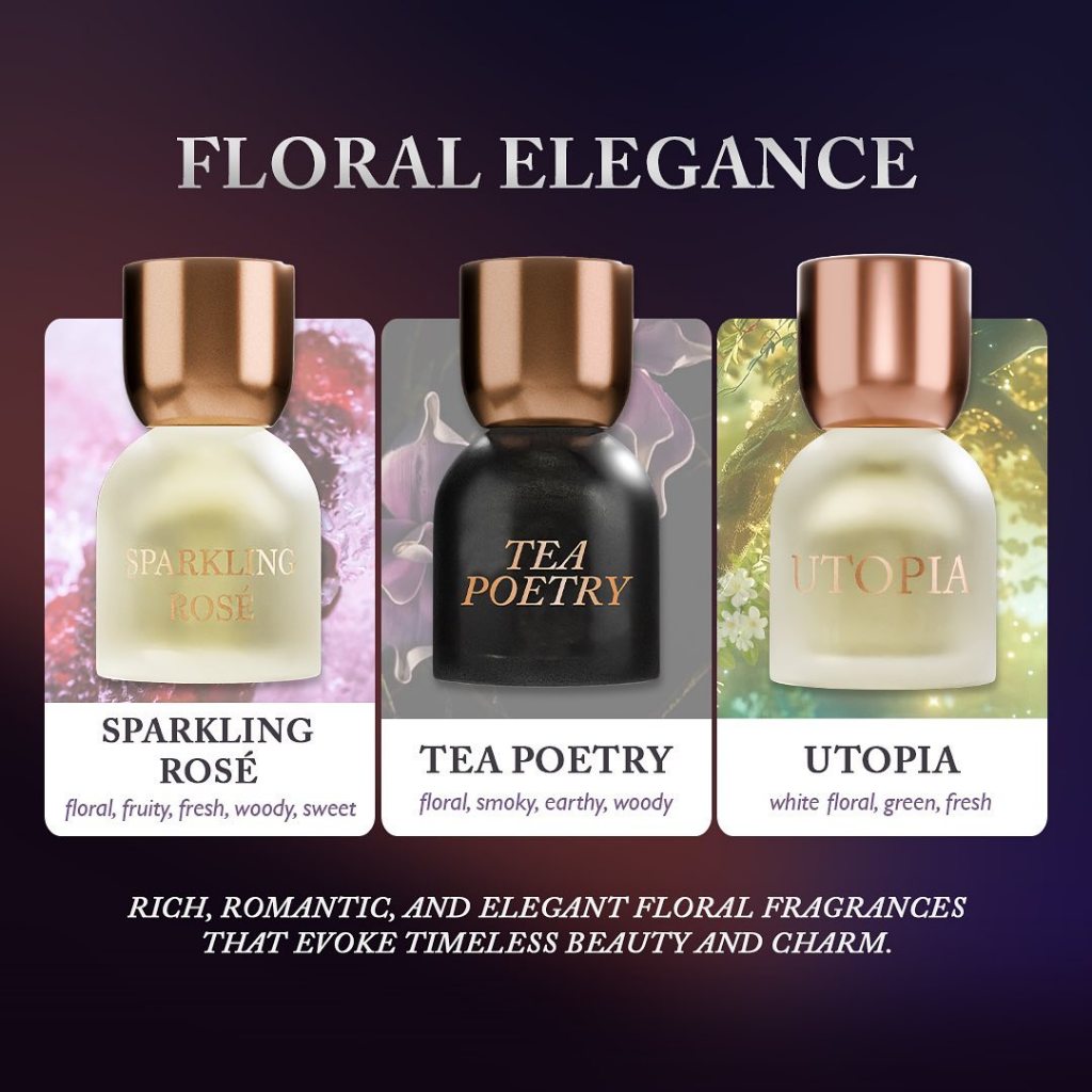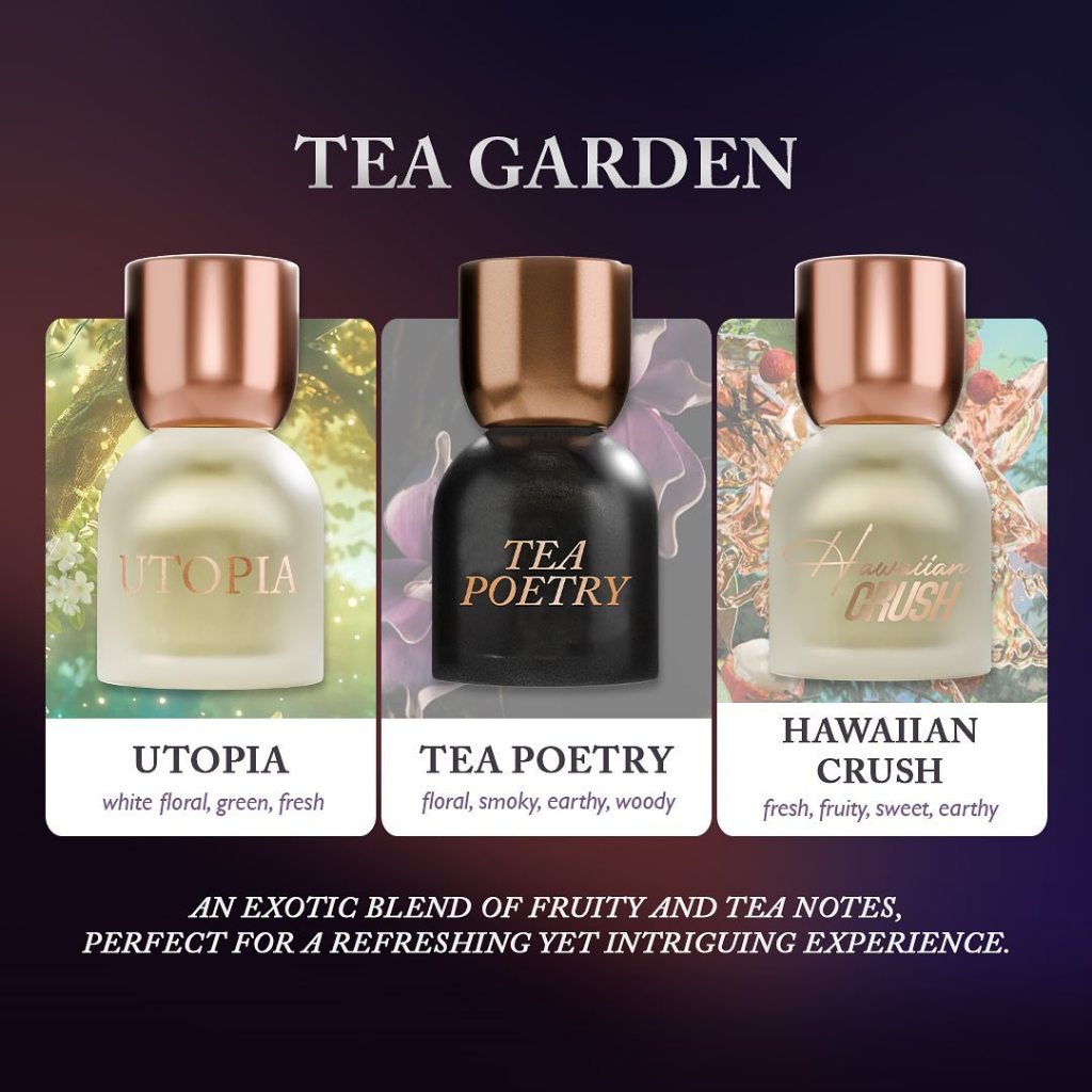 On The Rocks, Black Opera, Hawaiian Crush, Dark Secret, Tea Poetry, Utopia, Satin Blanc, Sparkling Rose, Intimate Affair, Royal Ispahan