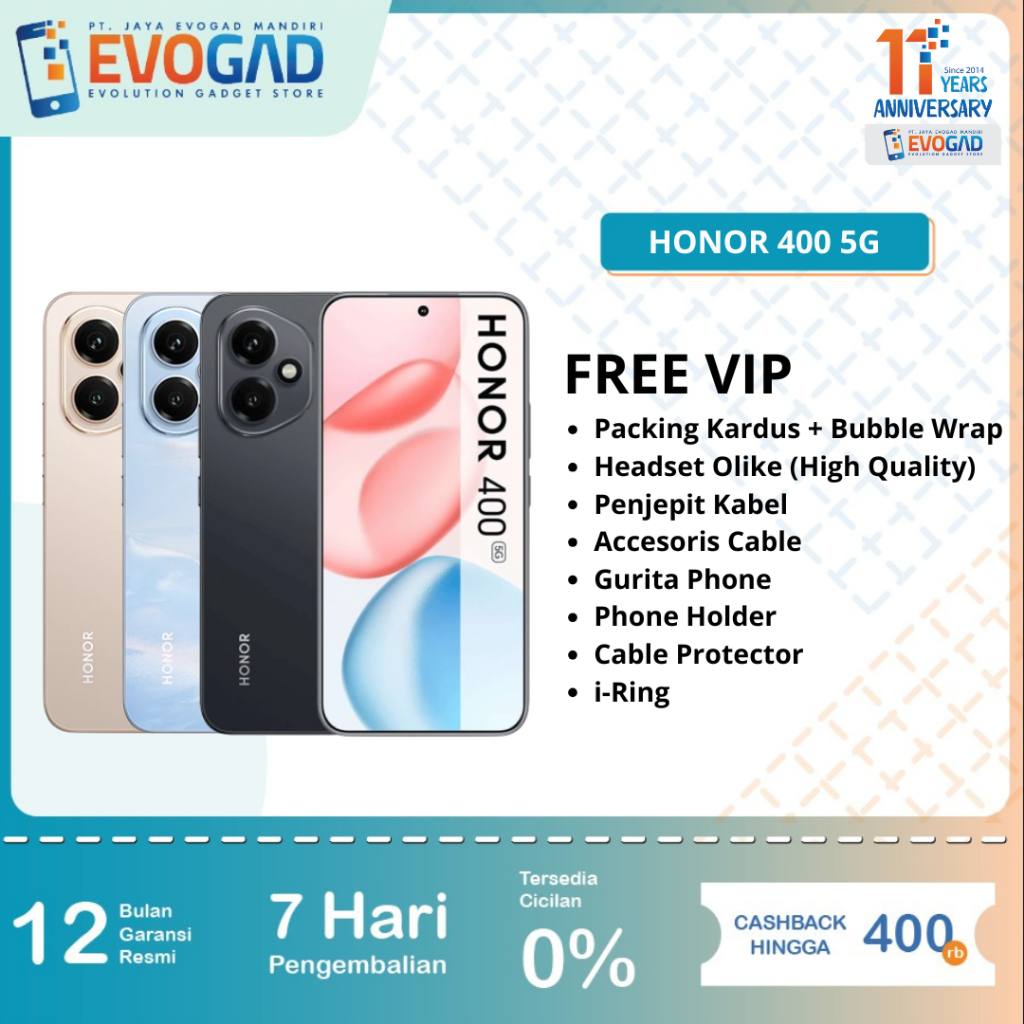 Honor 400 5G 12/512GB Snapdragon 7 Gen 3 (4 nm), 200MP Ultra-Clear AI Camera | Garansi Resmi Honor Indonesia 1 Tahun