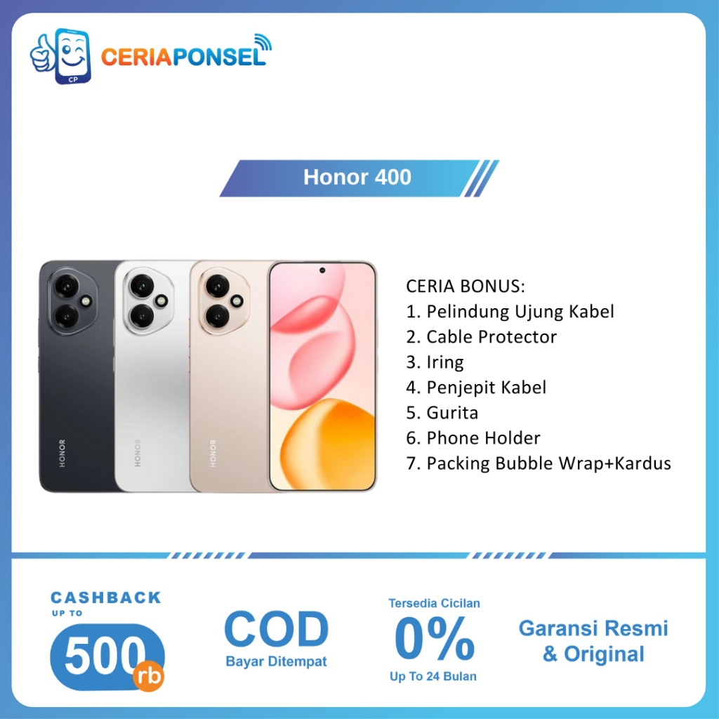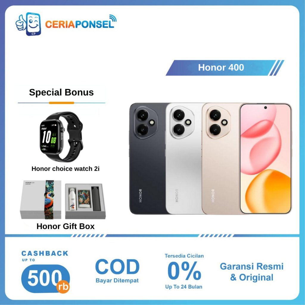 Honor 400 5G 12/512GB, Snapdragon 7 Gen 3 Amoled 6.55 inches 50MP 6000 mAh 66W SuperCharge | Garansi Resmi Honor 1 Tahun