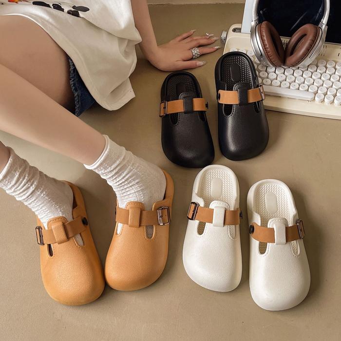 [Star]Dejavu Sandal Santai Wanita Sandal Slop EVA Anti Slip Ringan Dipakai Sandal Wanita Trendy HES101 - Putih, 36-37