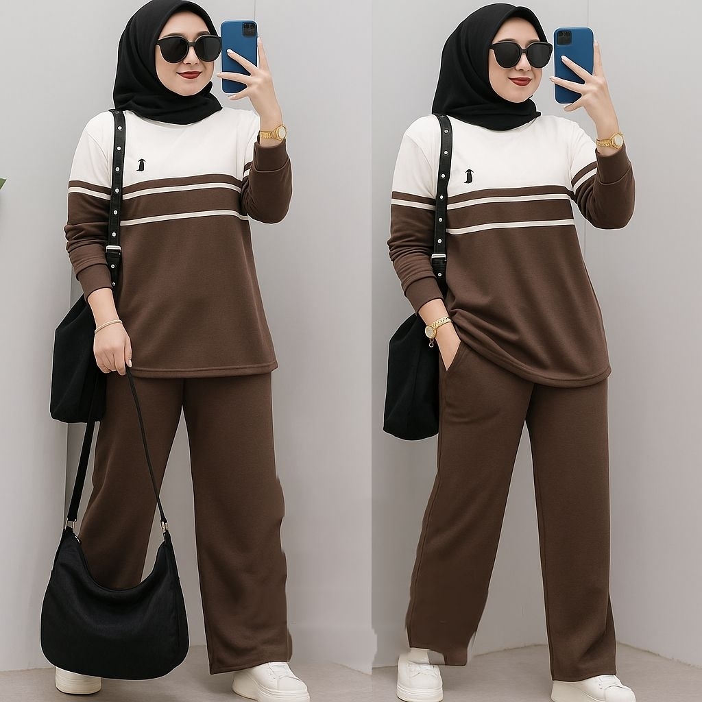 Promo 100 Ribu Dapat 3Pcs Setelan Wanita Kekinian One Set Kombinasi Warna Bahan Katun Pollymicro Setelan Wanita Muslim