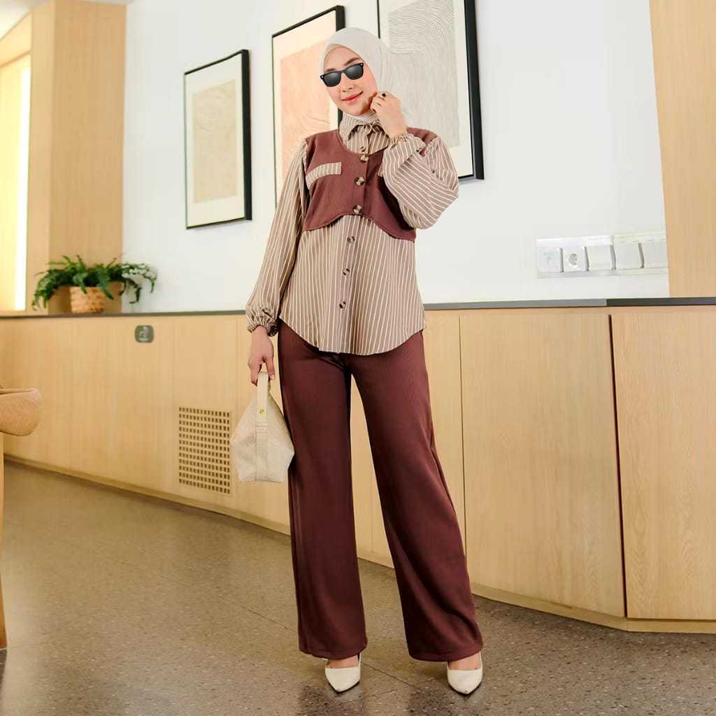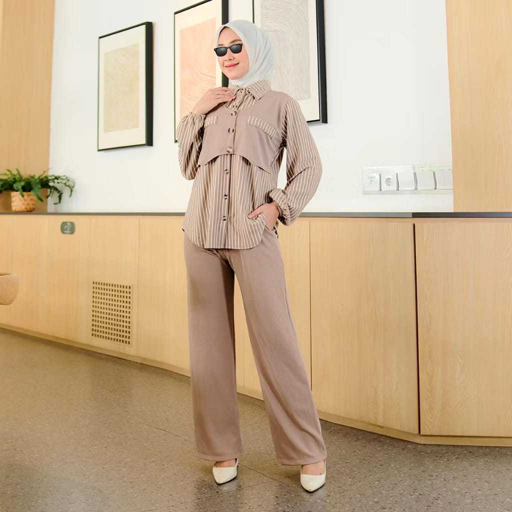 One Set Nira Setelan Baju Atasan Dan Celana Kulot Airflow Premium Wanita Muslim Kece Terbaru
