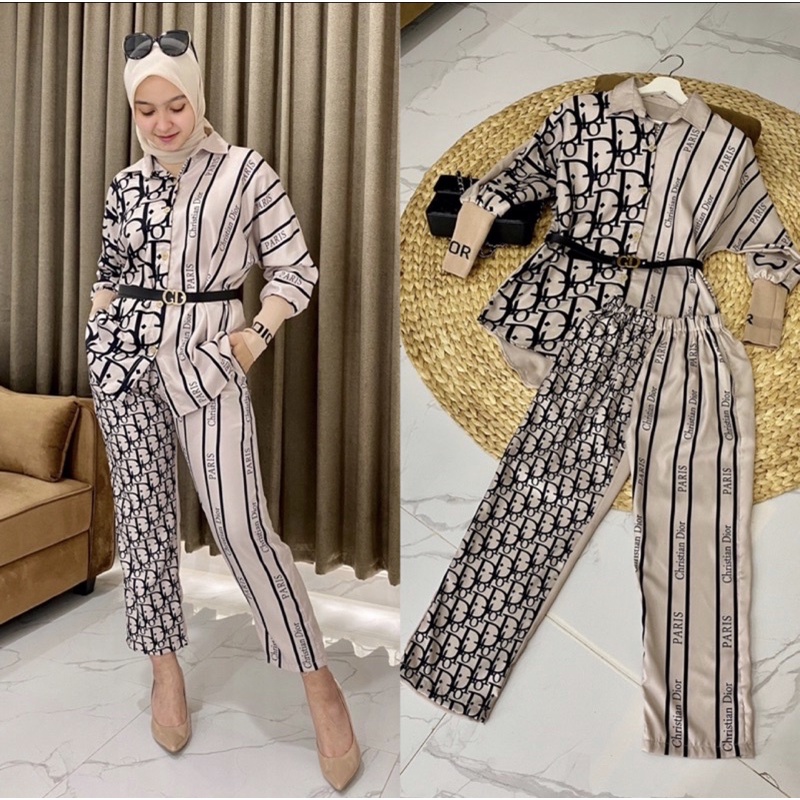 SETELAN CELANA PANJANG FREE BELT / KEMEJA OVERSIZE FREE BELT / ONESET PRINTING FREE BELT