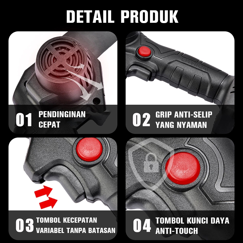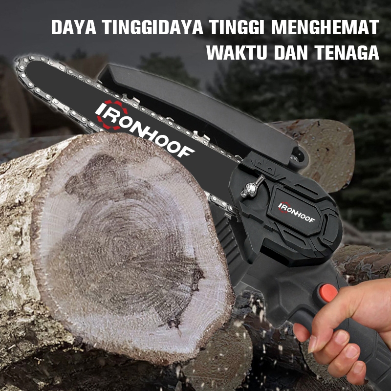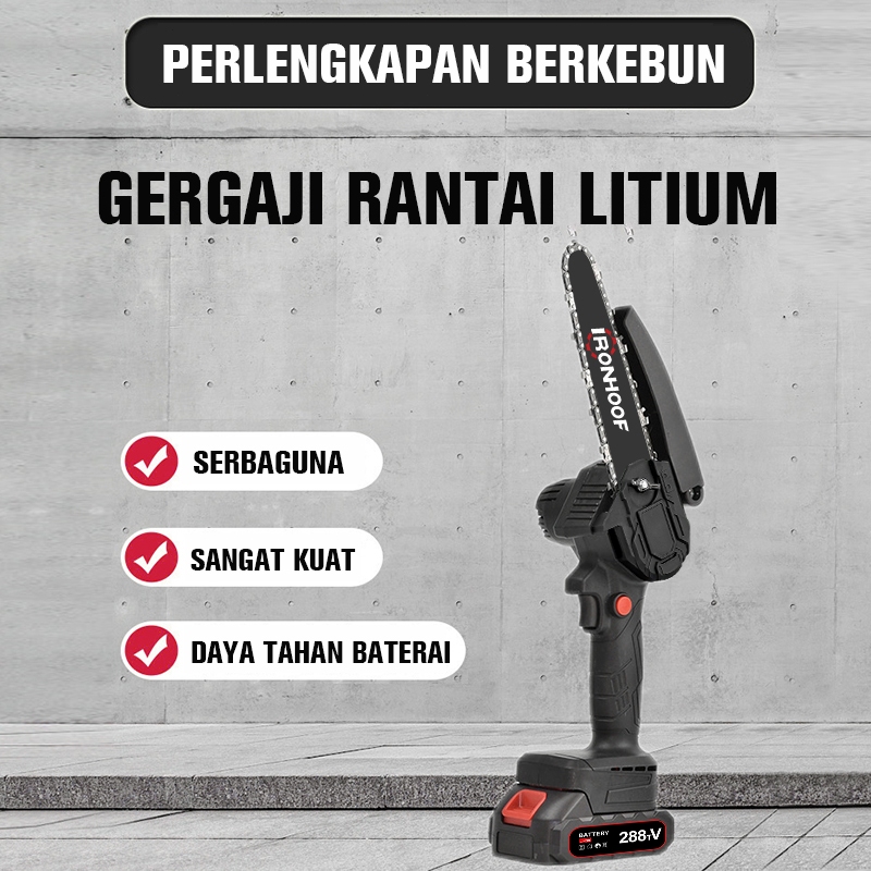 Ironhoof Mesin Chainsaw 6/8/12/16 Inch Cordless Chainsaw 288V Gergaji Baterai Gergaji Rantai Elektrik Mini 2 baterai Gergaji Listrik