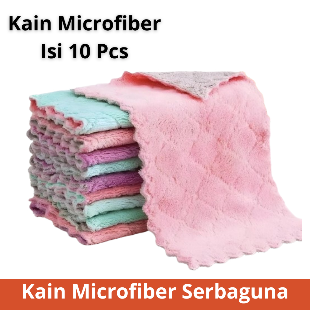 Kain Lap Microfiber Isi 10pcs / Kain Lap Piring Anti Minyak Microfiber Dapur Hand Towel Dish Towel