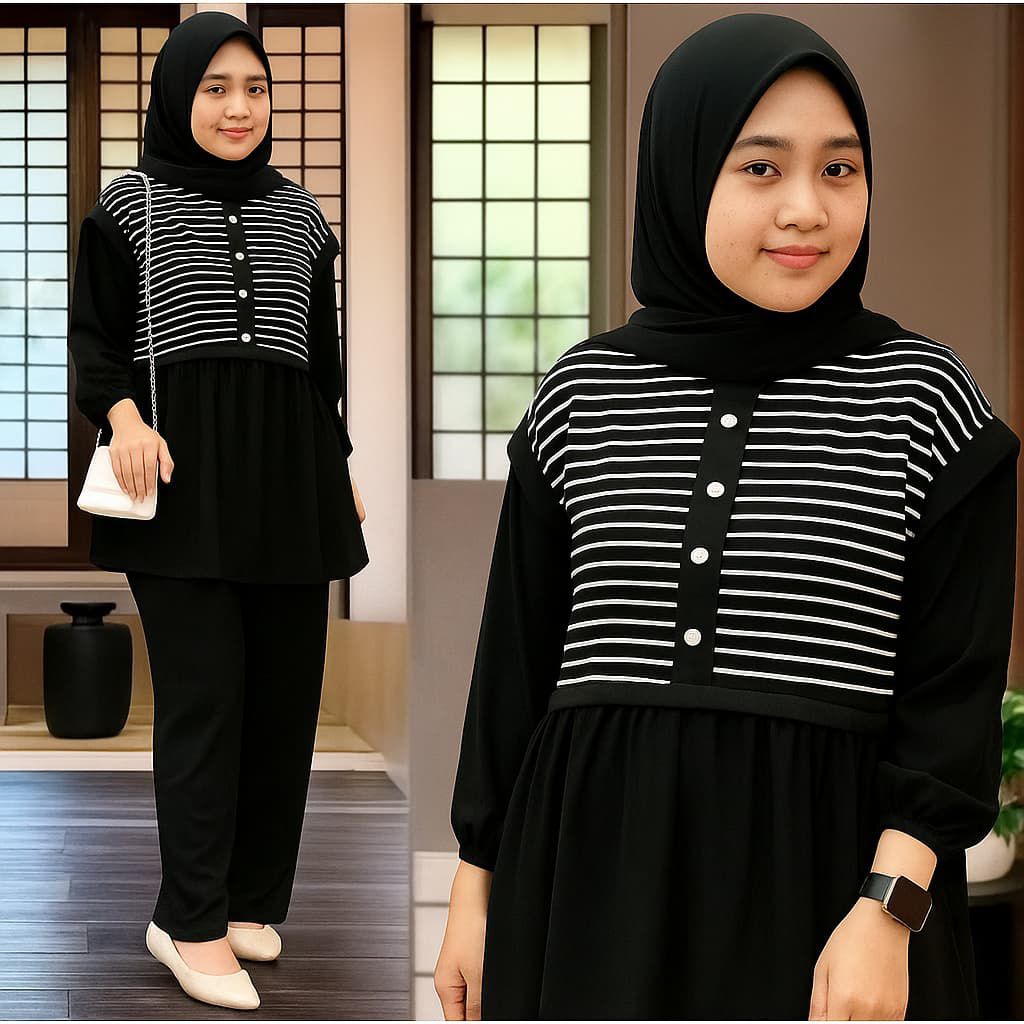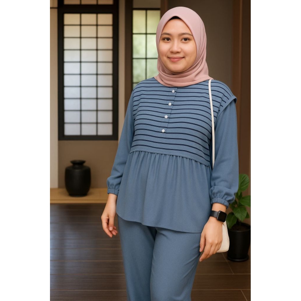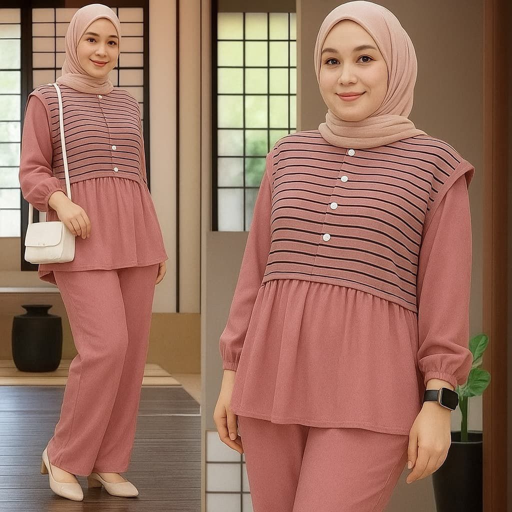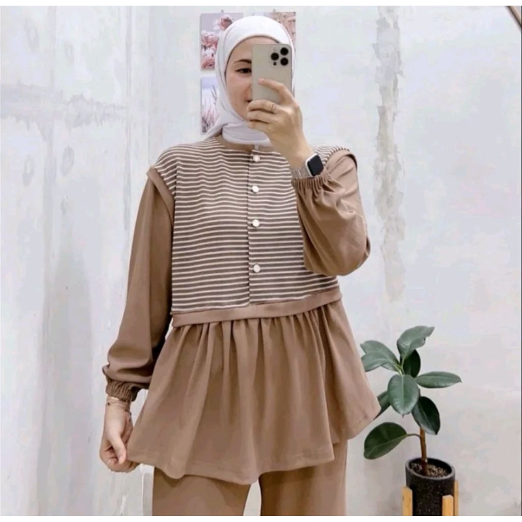 100 Ribu Dapat 3 Pcs Baju Setelan Wanita Kekinian One Set Korea Setelan Wanita Muslim Remaja Dewasa Terbaru Busui Kancing Tiga Baju One Set Selvia