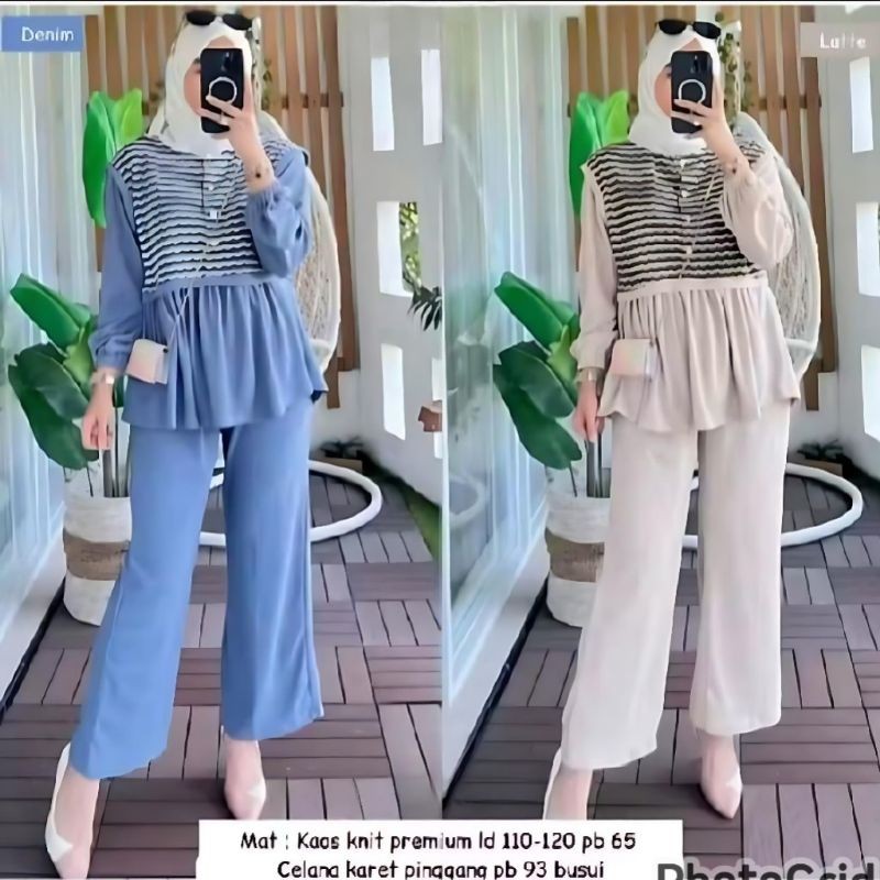 SETELAN WANITA ONESET MOTIF SALUR KOMBINASI/MODEL TERBARU 2025 BAHAN KATUN PREMIUM//TERLARIS 2025 TERBARU
