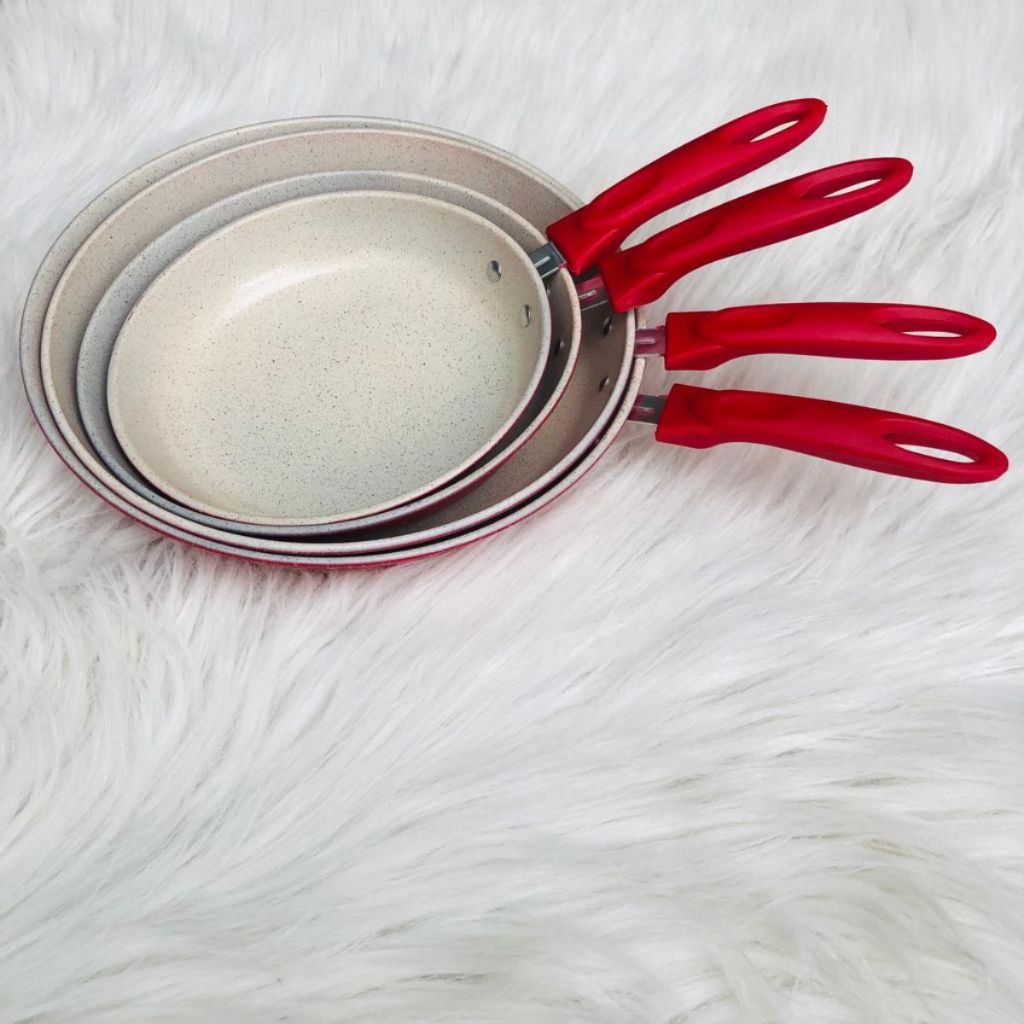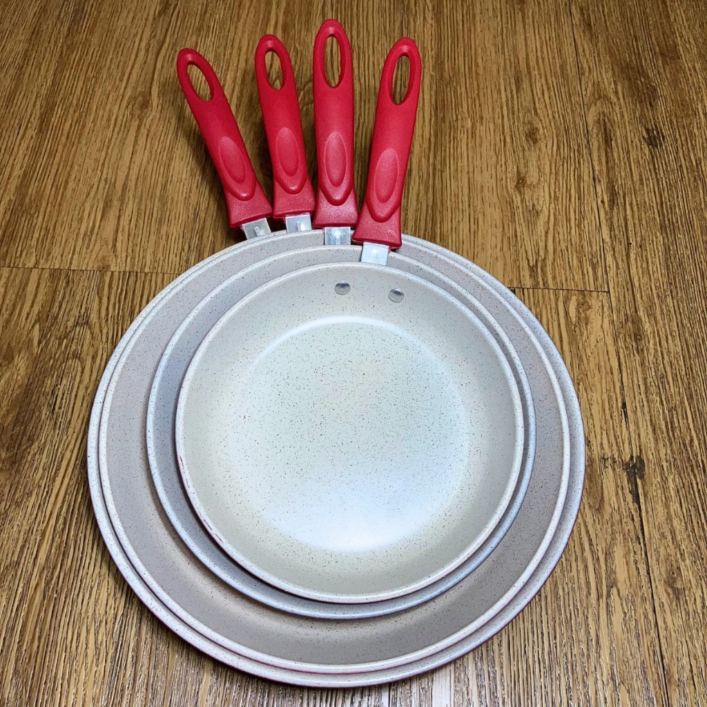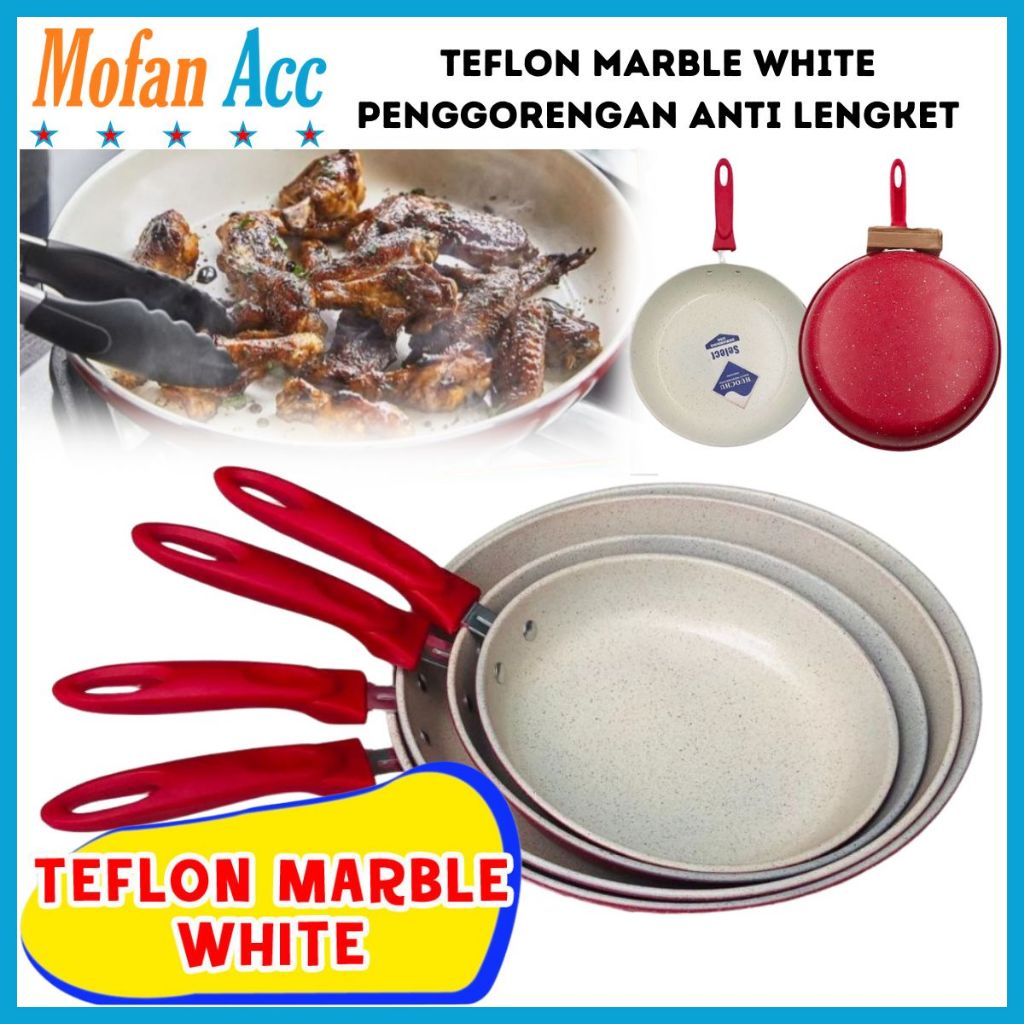 Teflon Marble White 20 22 24 26 28 cm Anti Lengket / Panci Goreng Tumis Rebus Panggang Grill Pan Metal Iron 20cm 22cm 24cm 26cm 28cm cm Putih Bulat Gagang Anti Panas Anti Karat Anti Slip