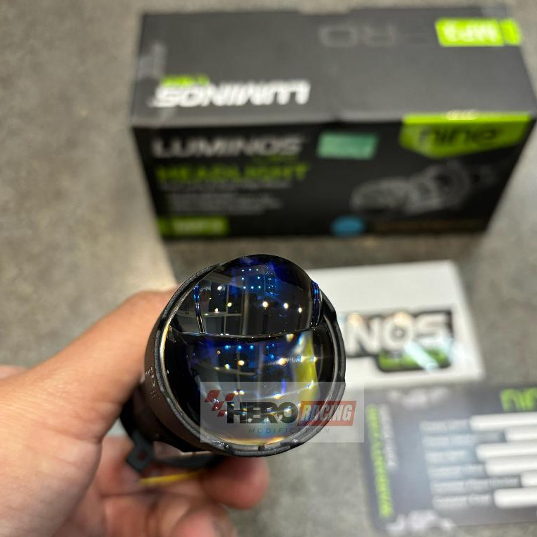 LAMPU UTAMA H4 MINI PROJECTOR BLUE LENS + DEVIL NINE LUMINOSLED MP3 PRO PROJECTOR LED 50WATT