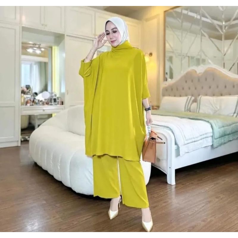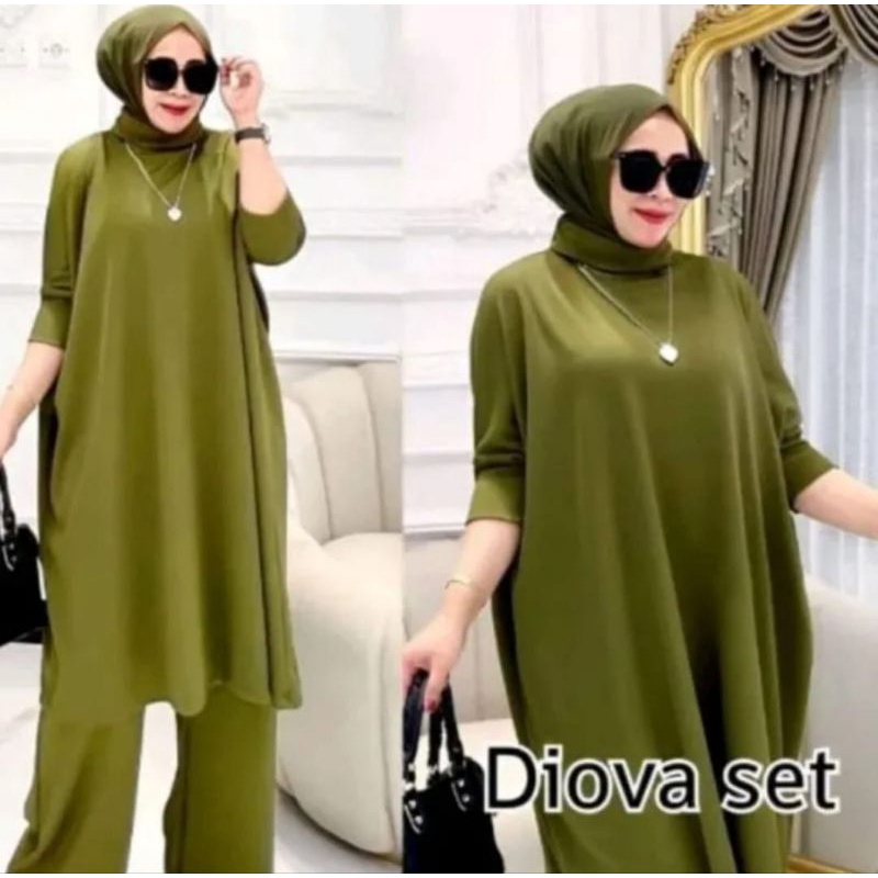 ((Promo menarik)) one set jumbo Wanita Dewasa//Setelan diova trend muslimah//Baju setelan material knits premium yang virall