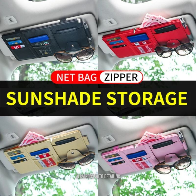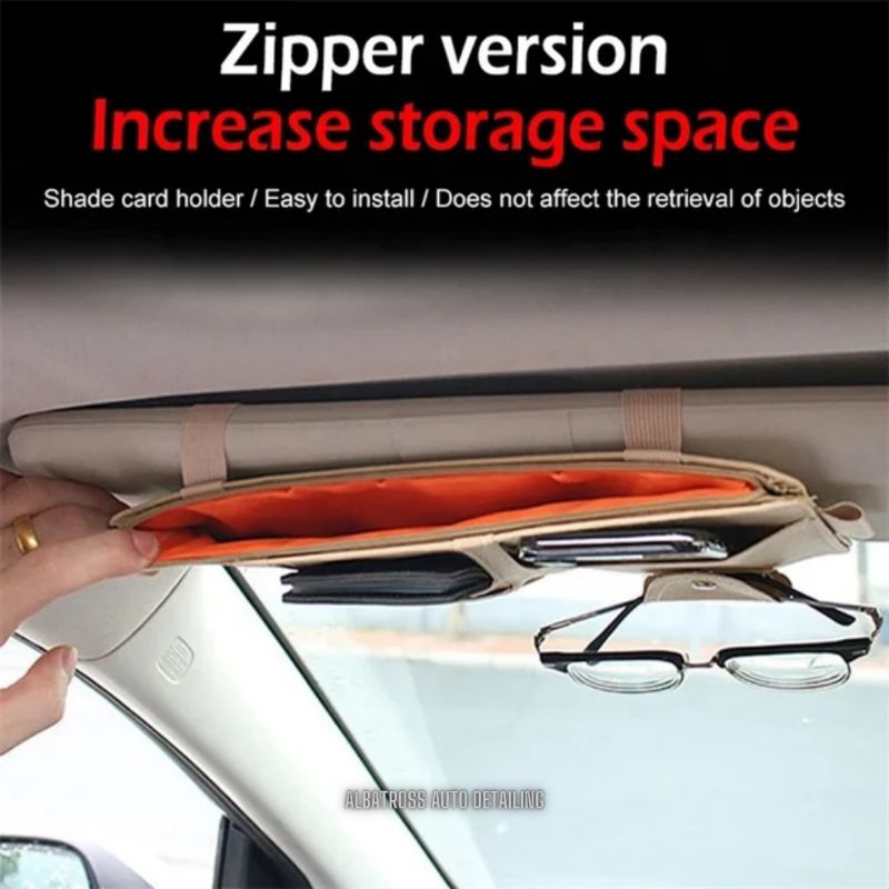 Albatross Car Sun Visor Storage Clip With Zipper Bag / Sunvisor Mobil Organizer Tempat Kartu Pen Karcis Universal