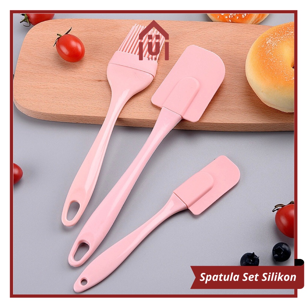 Uniso - [3 Pcs] Spatula Silicone Set Scraper Kuas Kue Sutil Sodet Silikon Anti Lengket Serbaguna