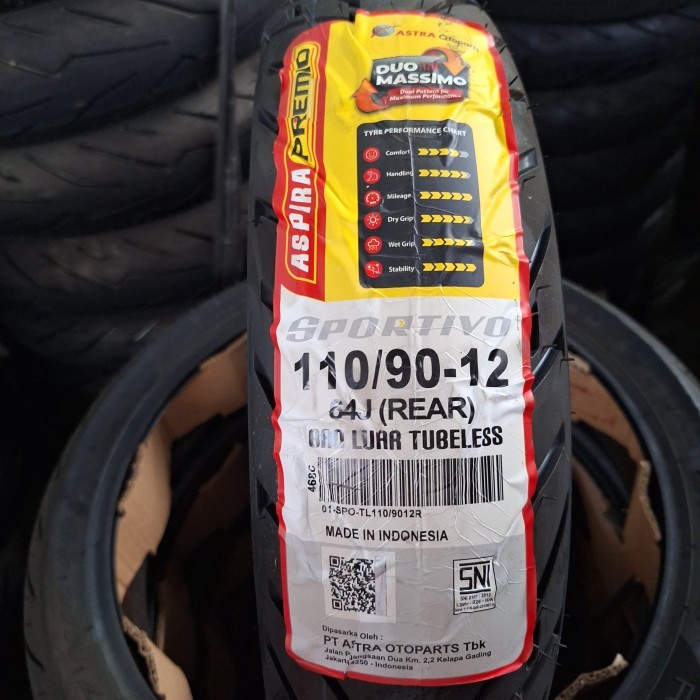 BAN LUAR SCOOPY BELAKANG 110/90-12 TUBLESS ( 110 TL ) ASPIRA