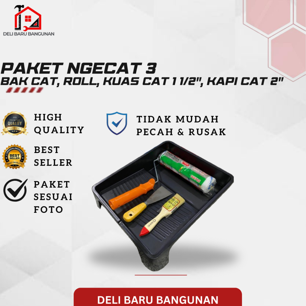 Kuas roll cat, Paket Ngecat 1, Bak cat anti pecah, Kuas cat 4 inch